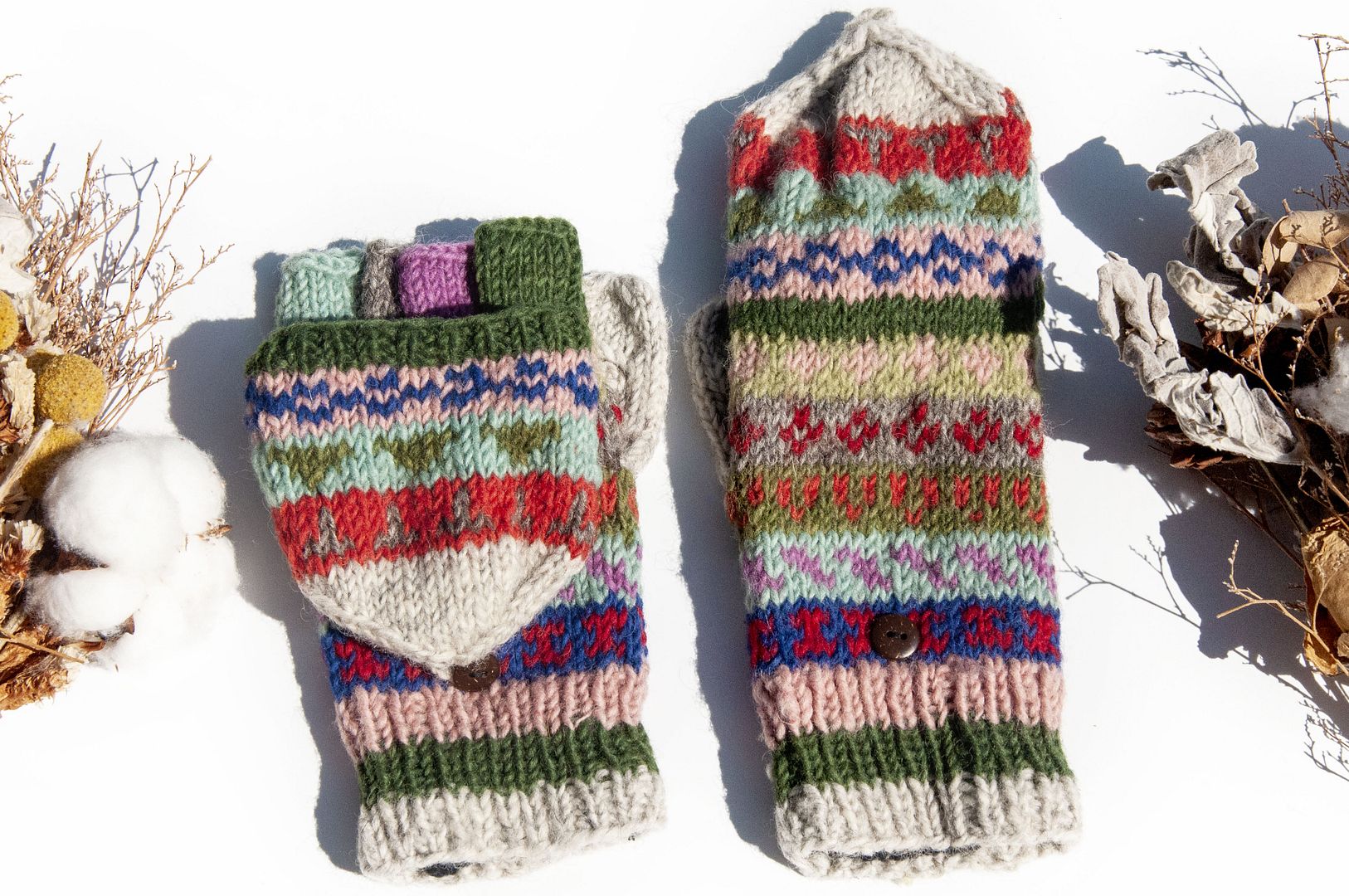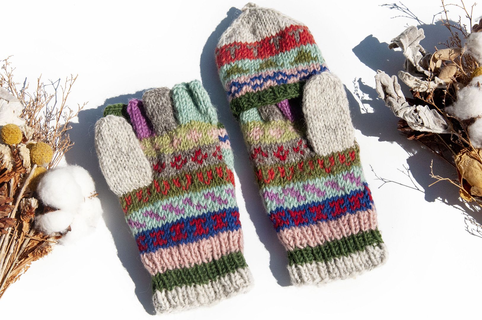 手織純羊毛針織手套/可拆卸保暖手套/內刷毛手套/觸控手套-北歐