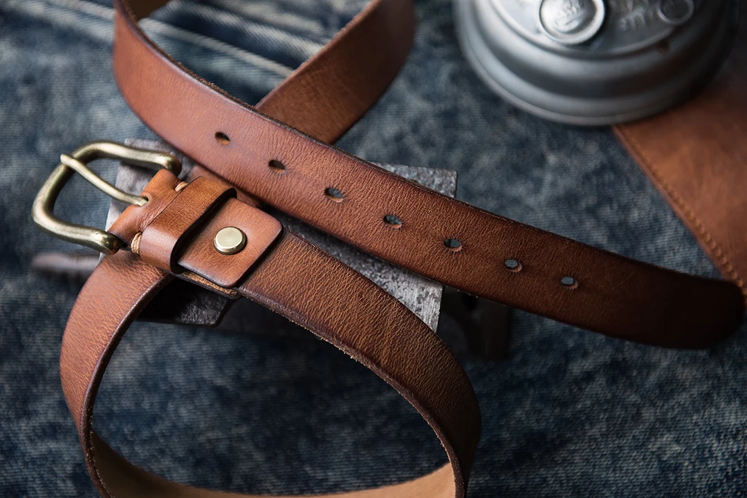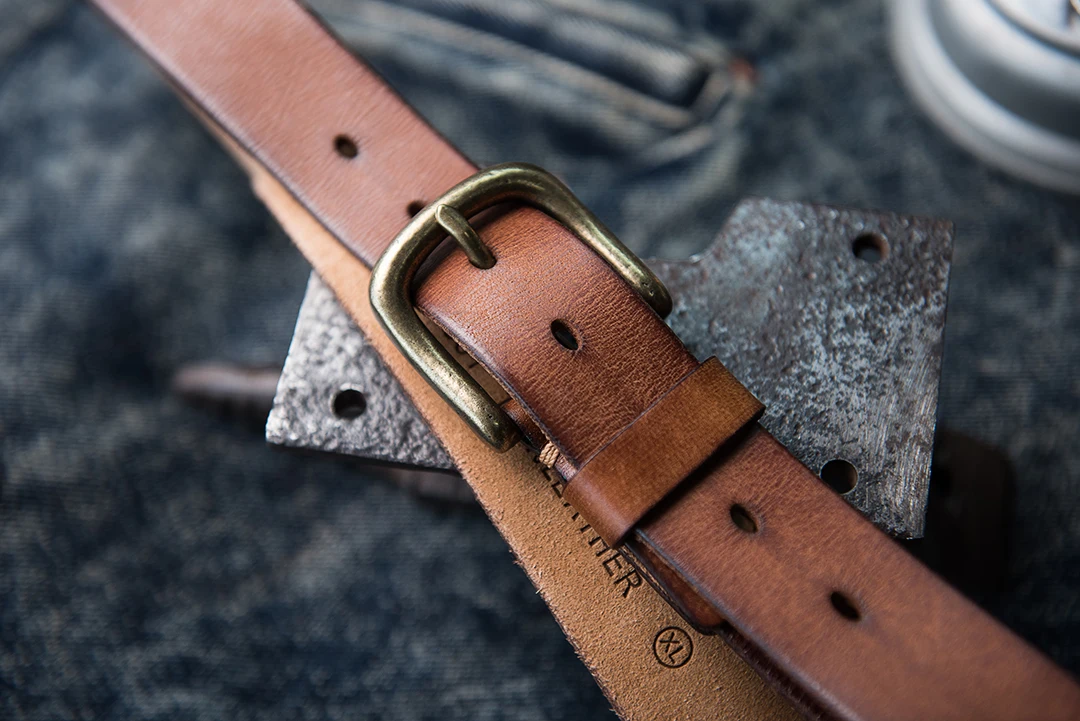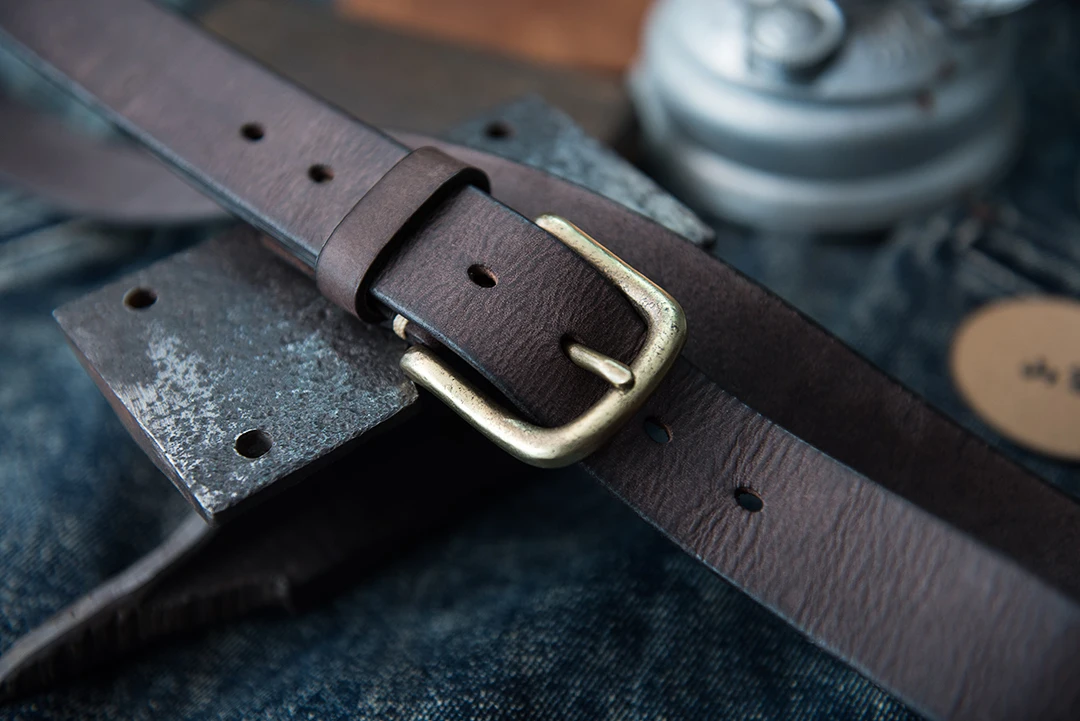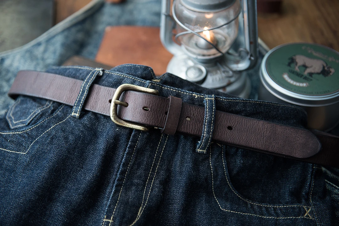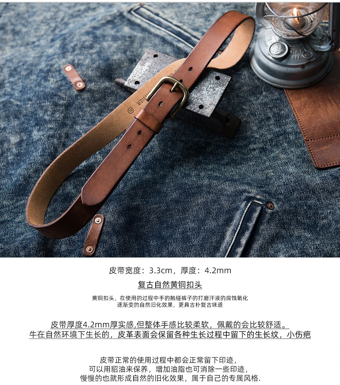 3.3cm寬 復古植鞣牛皮腰帶 男士皮帶 黃銅扣頭