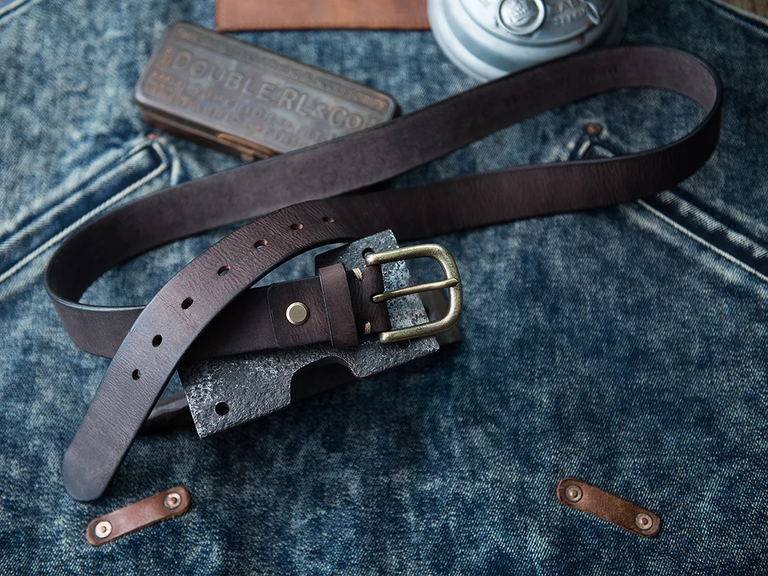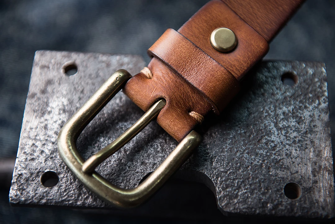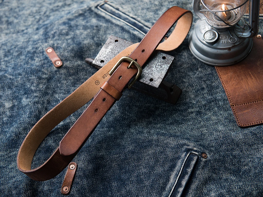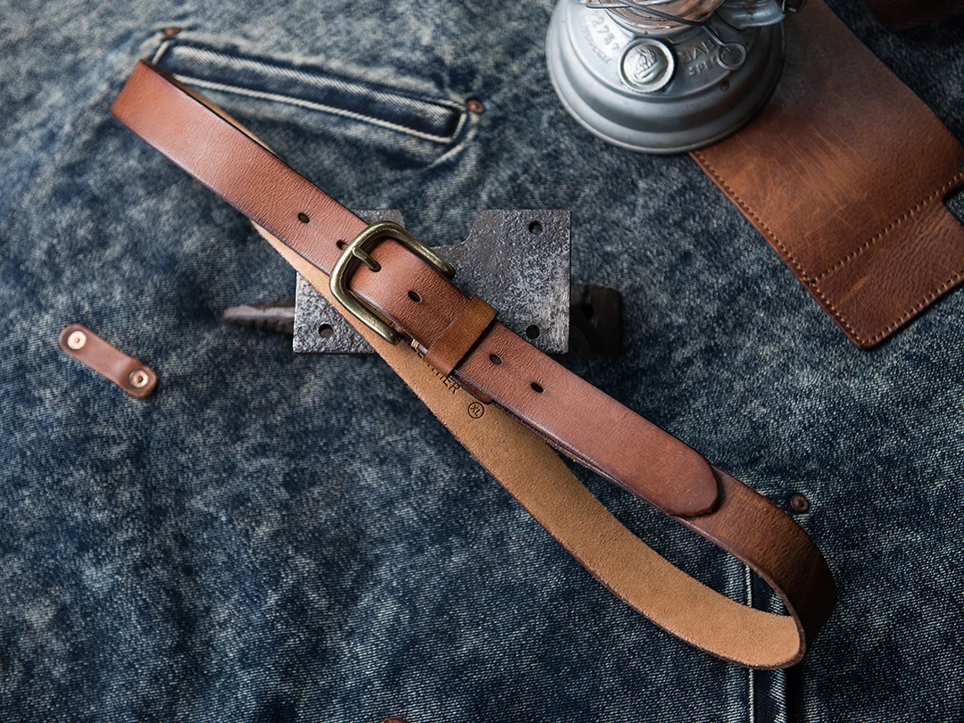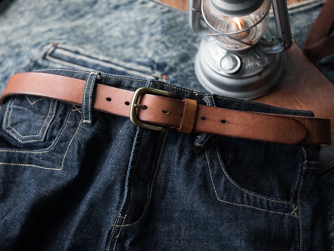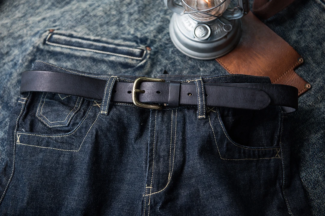 3.3cm寬 復古植鞣牛皮腰帶 男士皮帶 黃銅扣頭