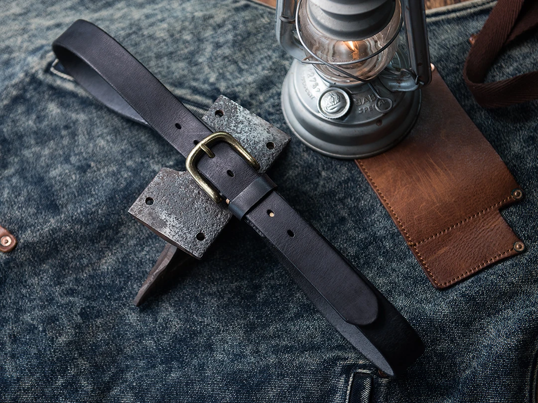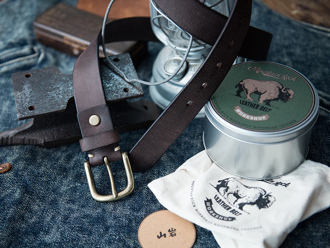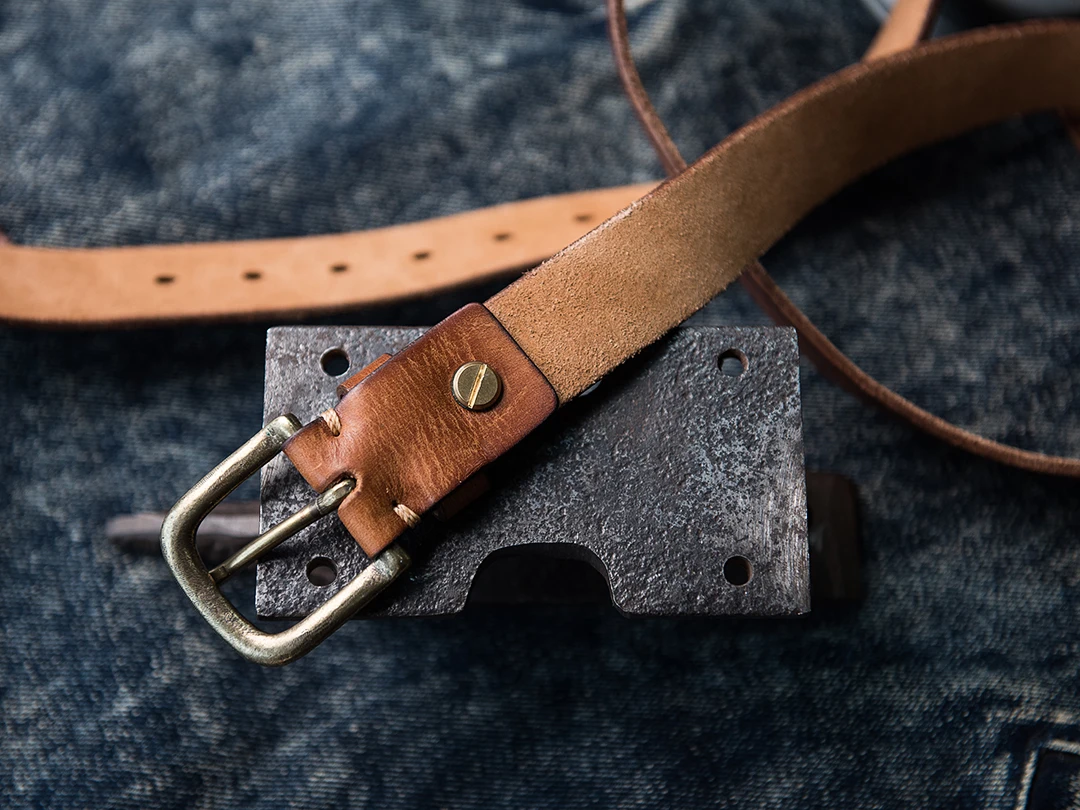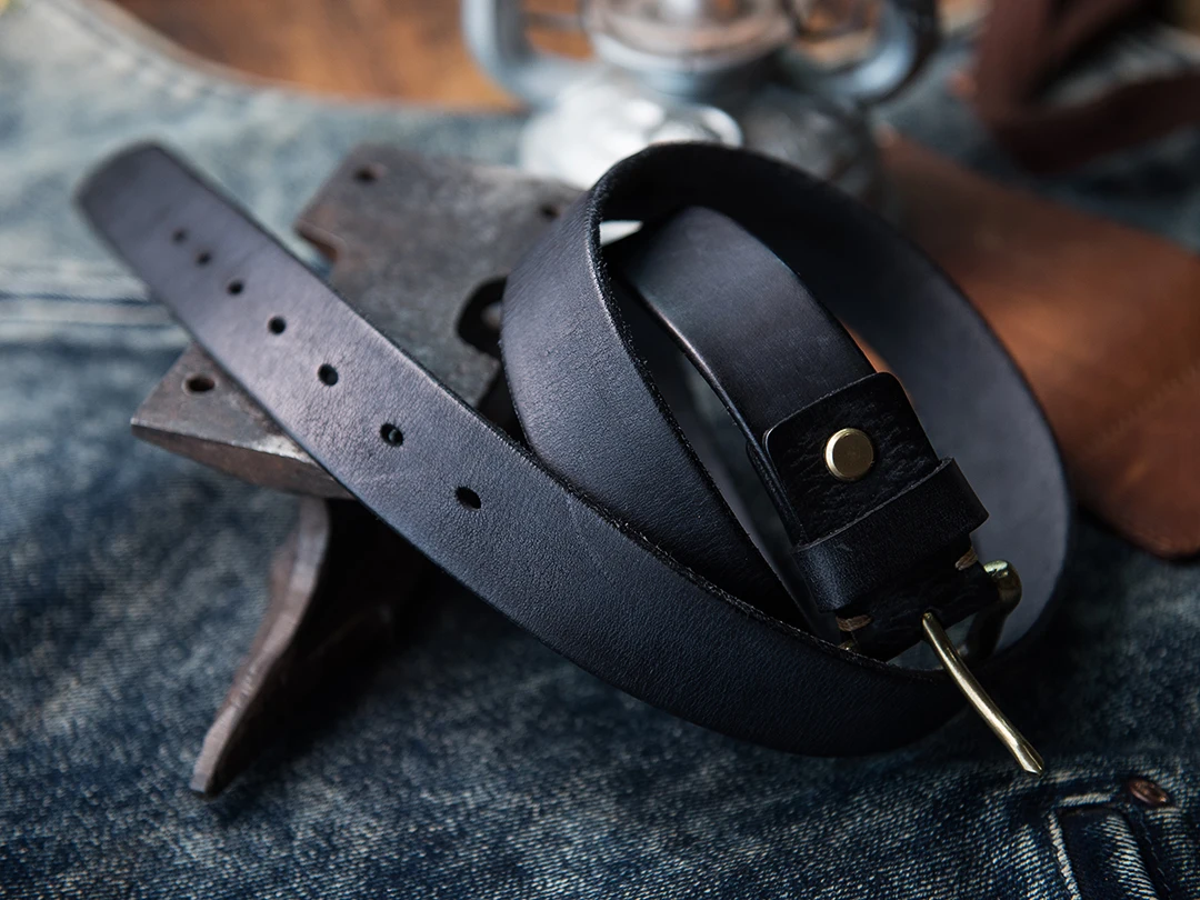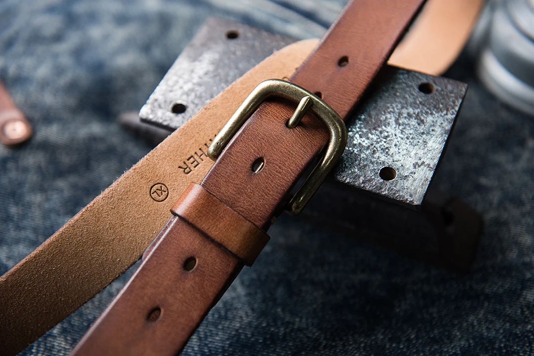 3.3cm寬 復古植鞣牛皮腰帶 男士皮帶 黃銅扣頭