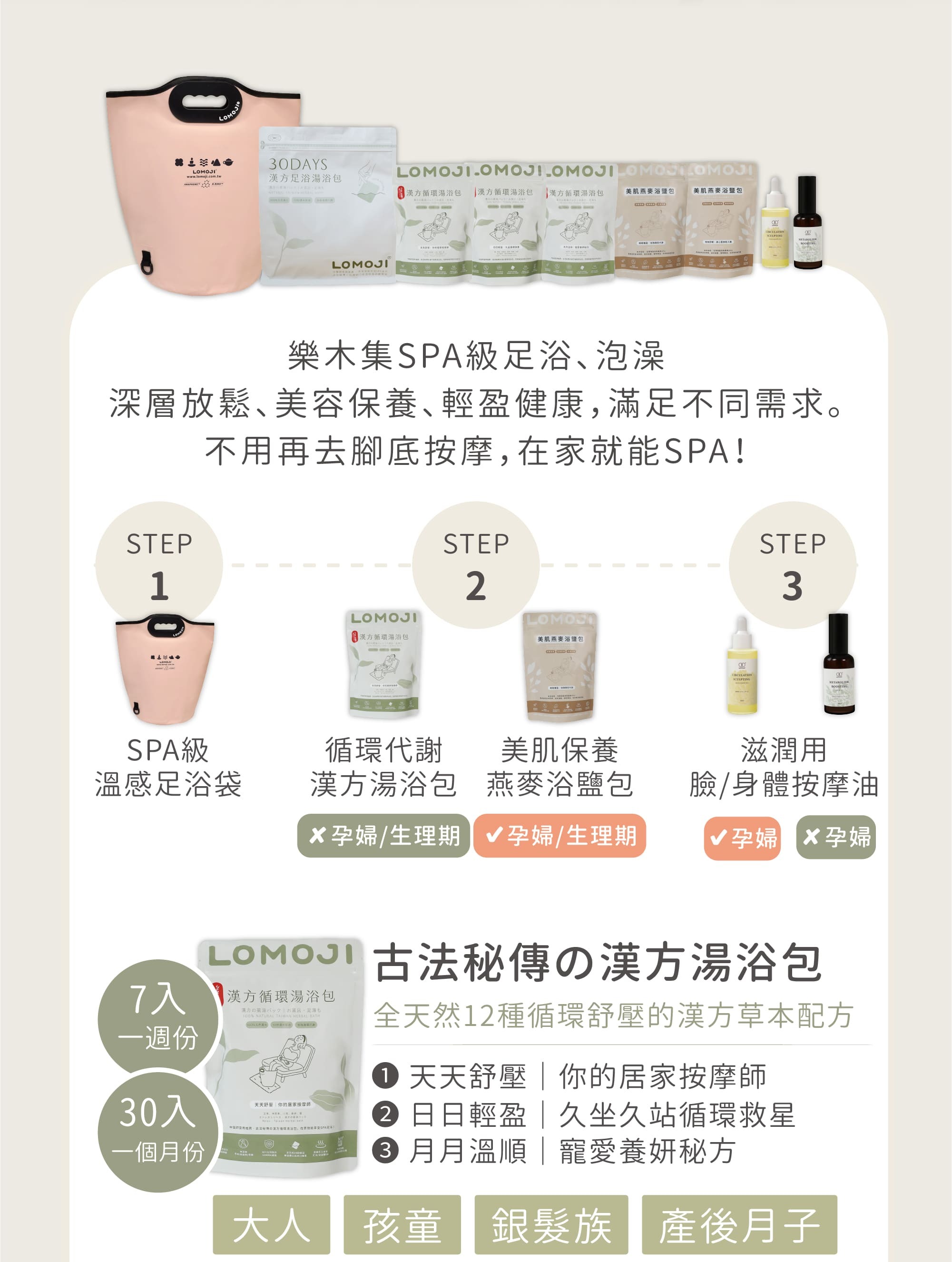中醫藥浴已有幾千年歷史,透過古法秘傳的漢方湯浴泡腳,好處多多30天新陳代謝、循環代謝、放鬆,擔心市售入浴劑都添加化學的你,可以選擇天然的!中醫師推薦樂木集漢方泡腳,100%天然中藥材,經烘焙研磨製成,不使用任何化學方式處理,大人小孩都可以泡(泡腳放1包,泡澡放2包)經烘焙研磨製成,將藥浴精華鎖住,遇水即溶10秒散發療癒草本香氣,共有三款足浴主題/12種天然草本,無論要深層放鬆、美容保養、或輕盈健康,都可以滿足不同泡澡需求!全家都安心使用,更是久坐上班族必備!不用再去腳底按摩,在家就能SPA!