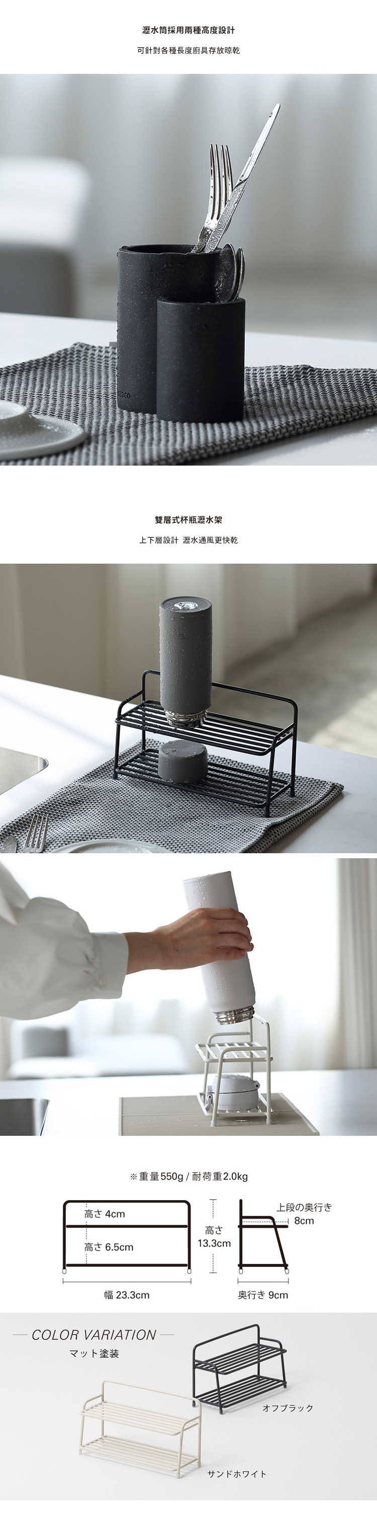 日本ideaco 砂岩雙層杯瓶餐具瀝水架3件組-多色可選