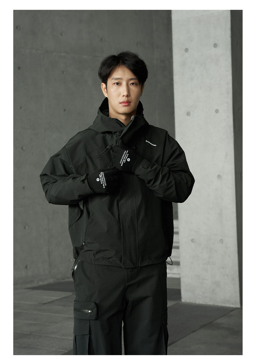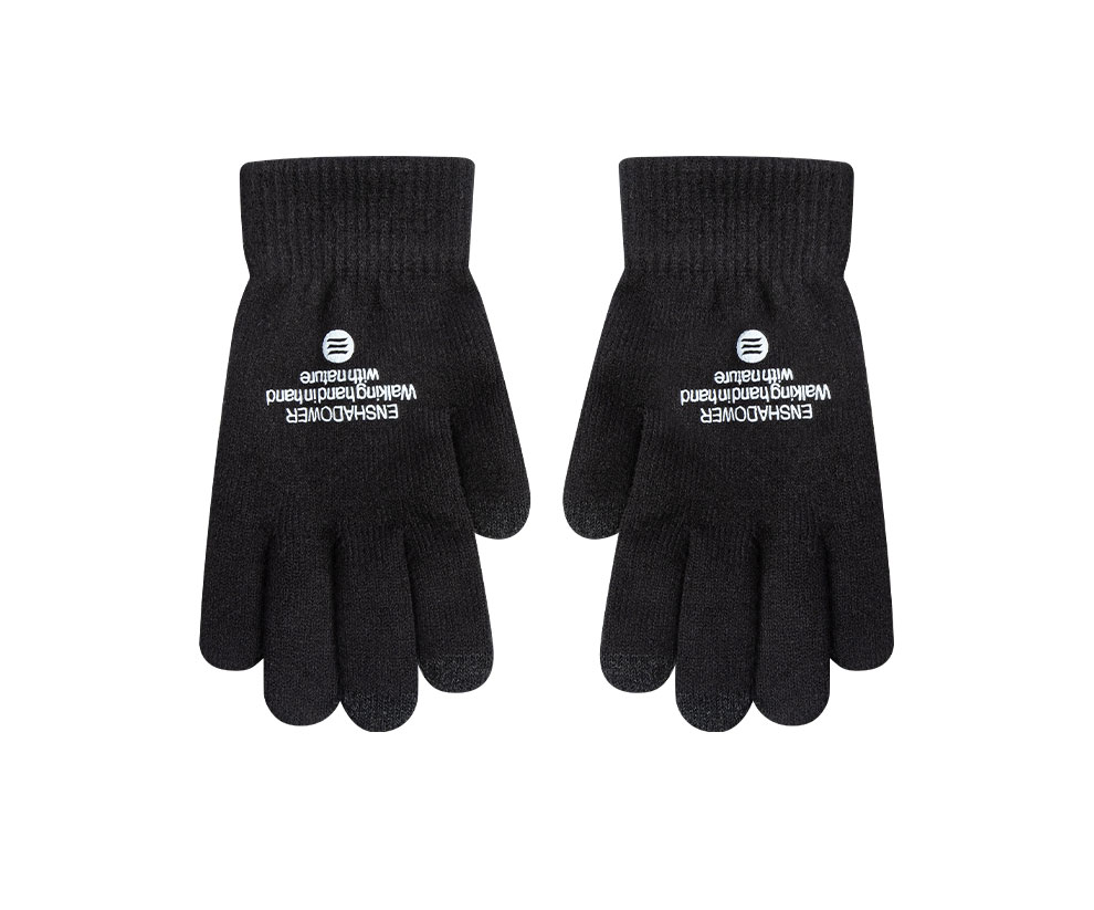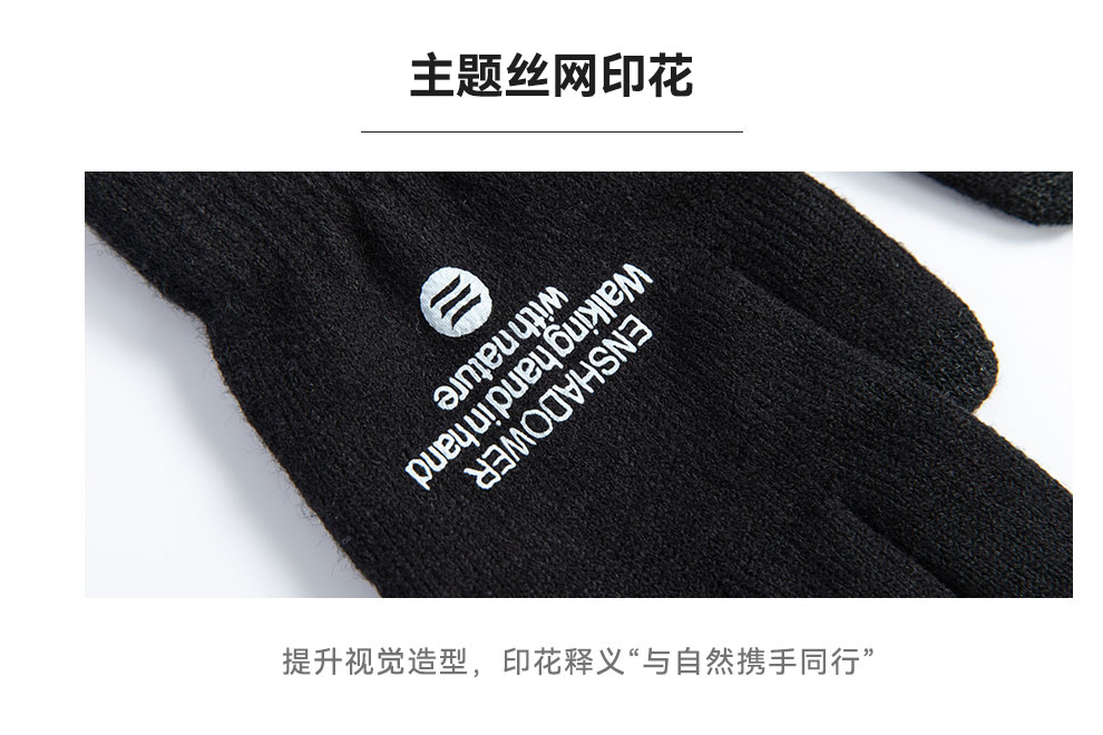 簡約LOGO字母撞色針織毛線保暖手套