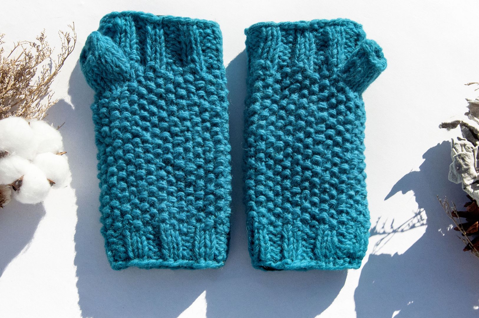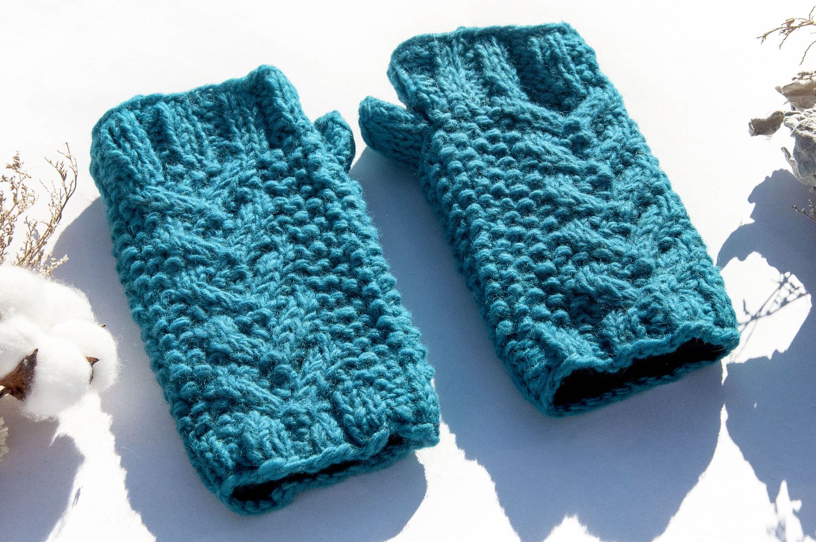 手織純羊毛針織手套/露趾手套/內刷毛手套/保暖手套-地中海海洋色