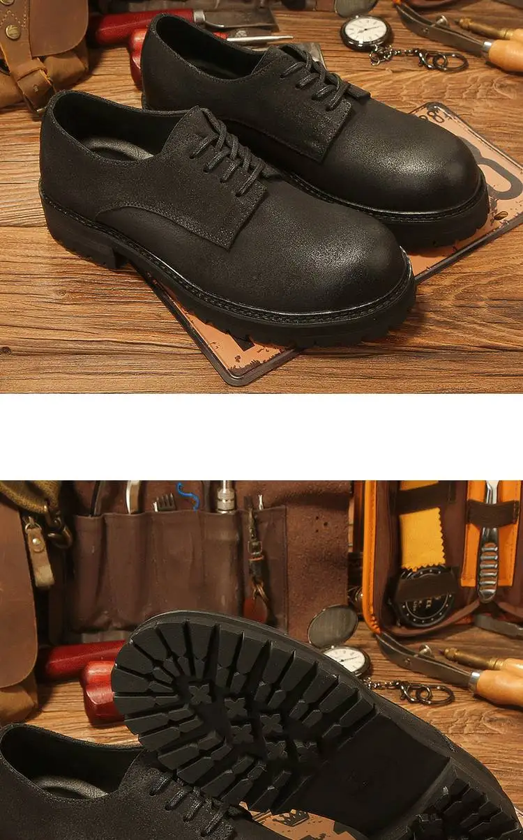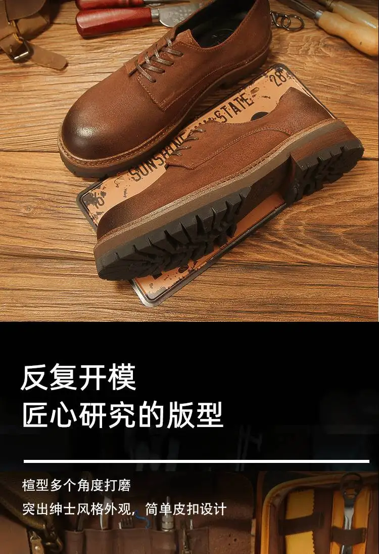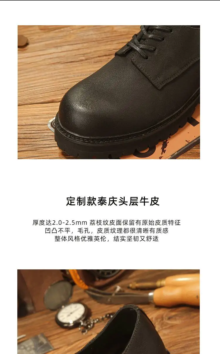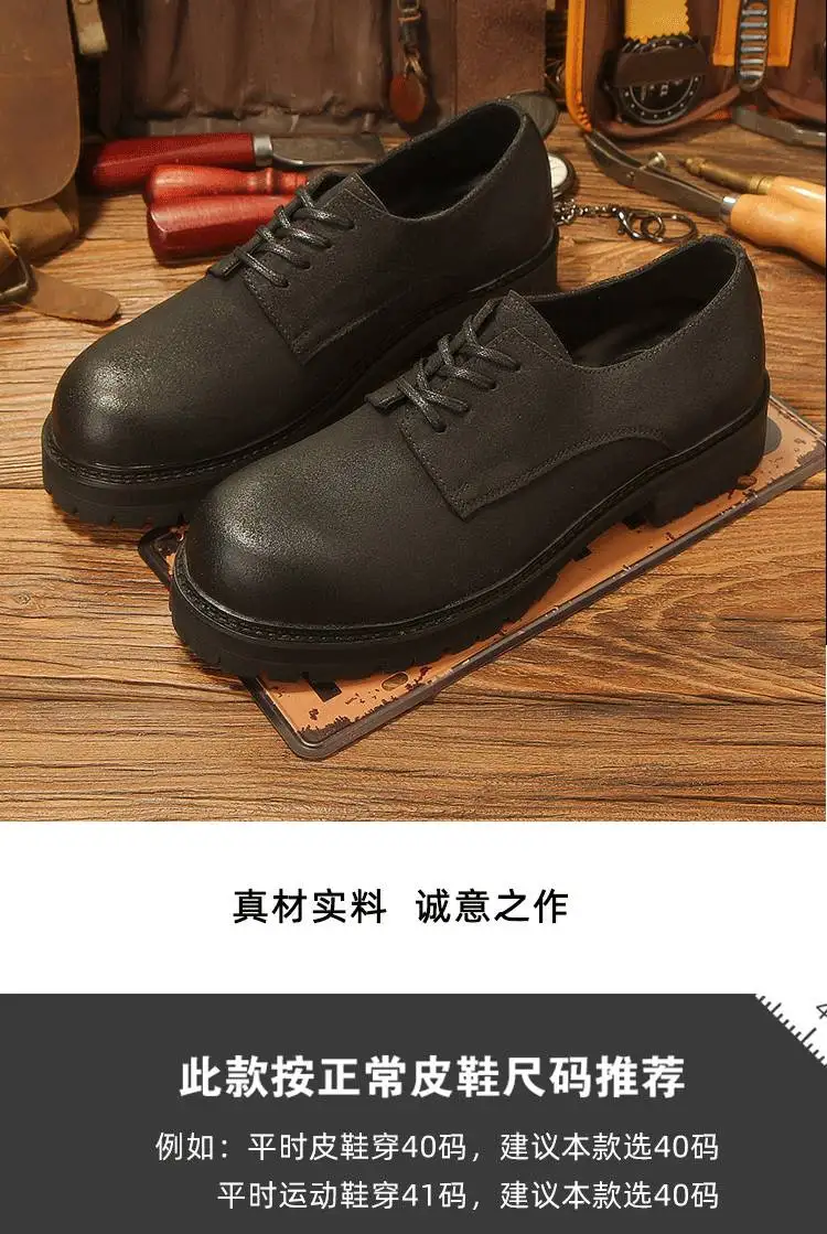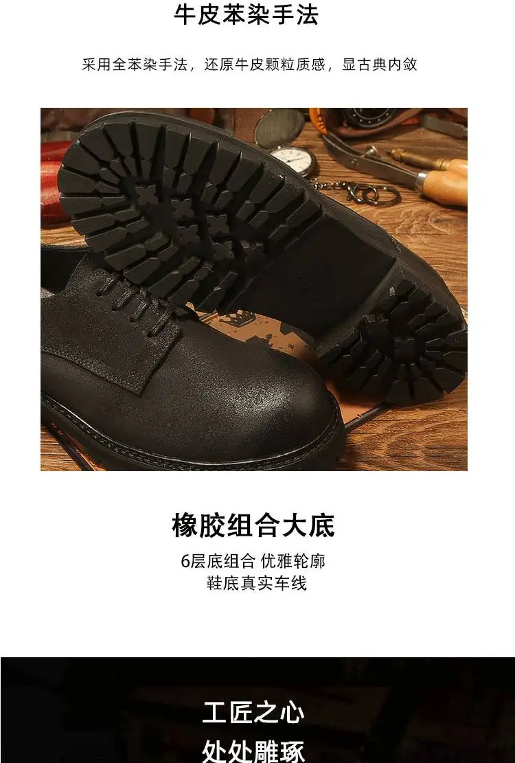 休閒磨砂大頭皮鞋 男士工裝鞋 復古英倫風厚底德比鞋