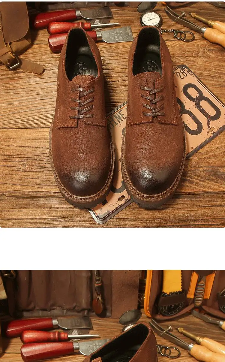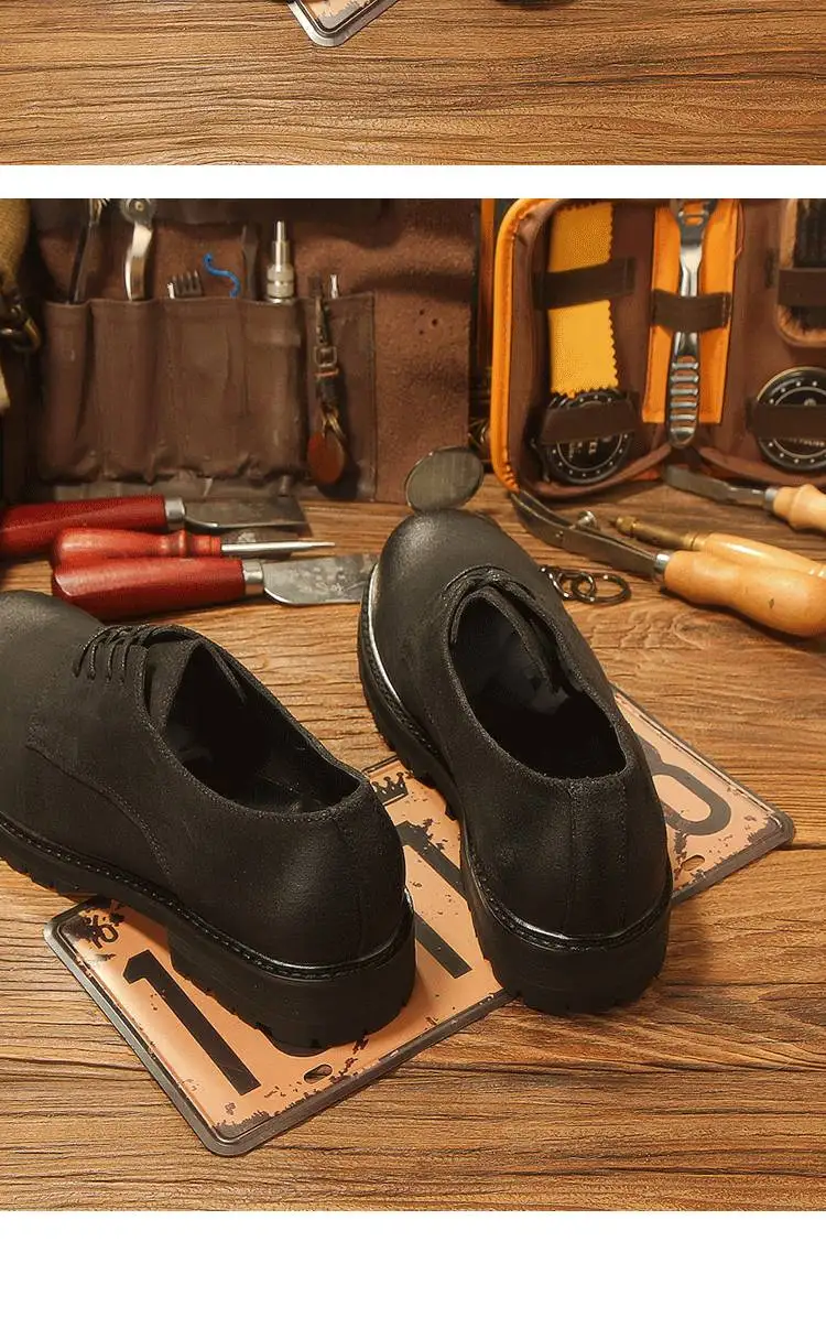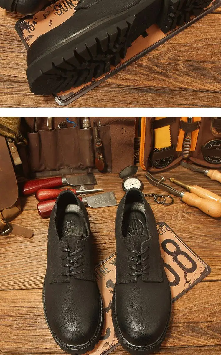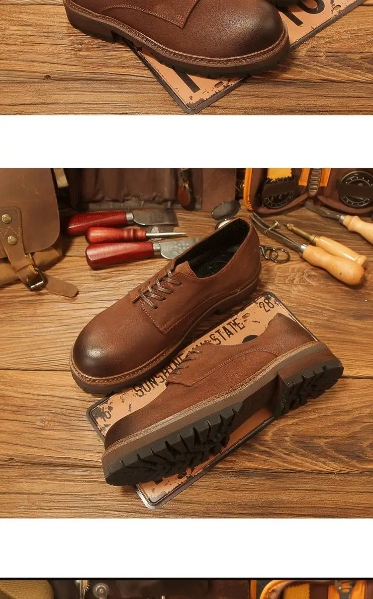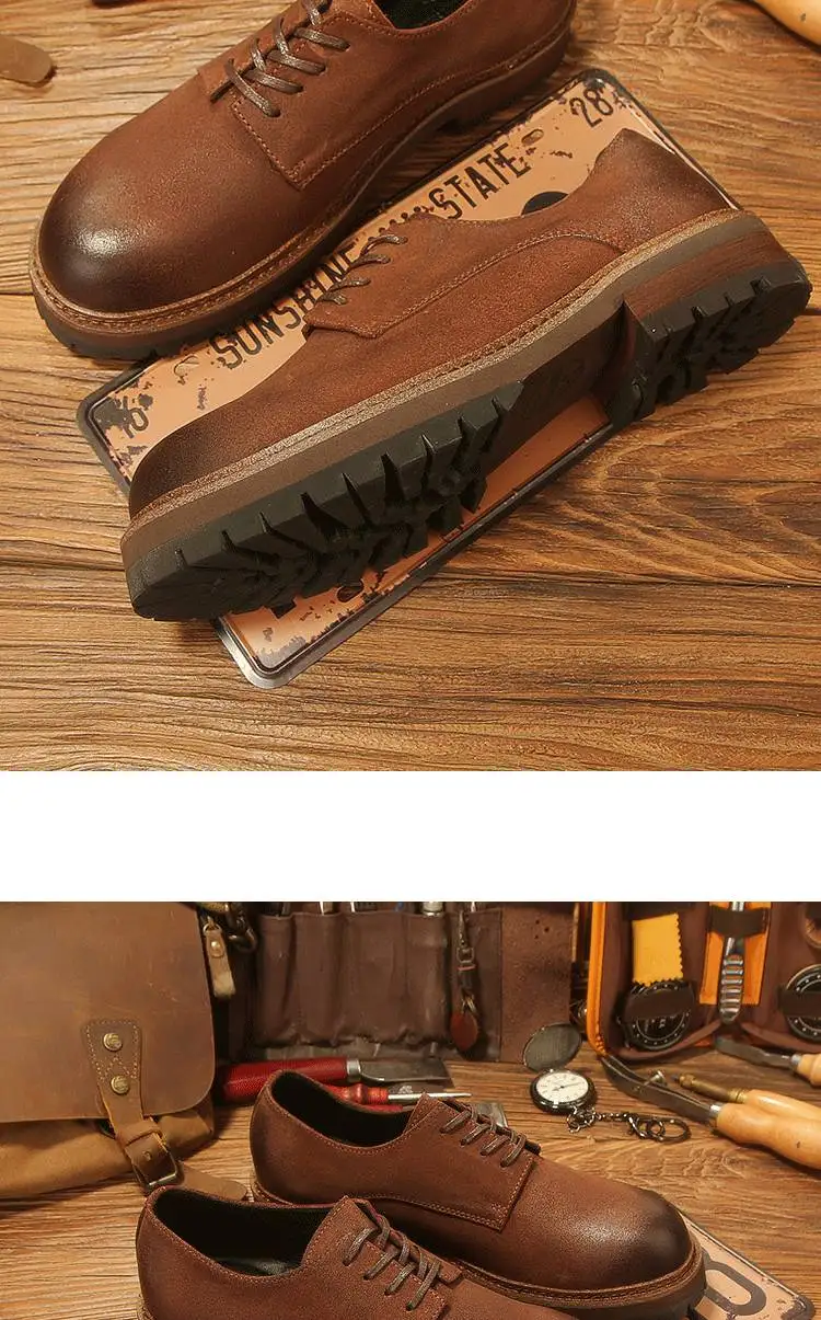 休閒磨砂大頭皮鞋 男士工裝鞋 復古英倫風厚底德比鞋