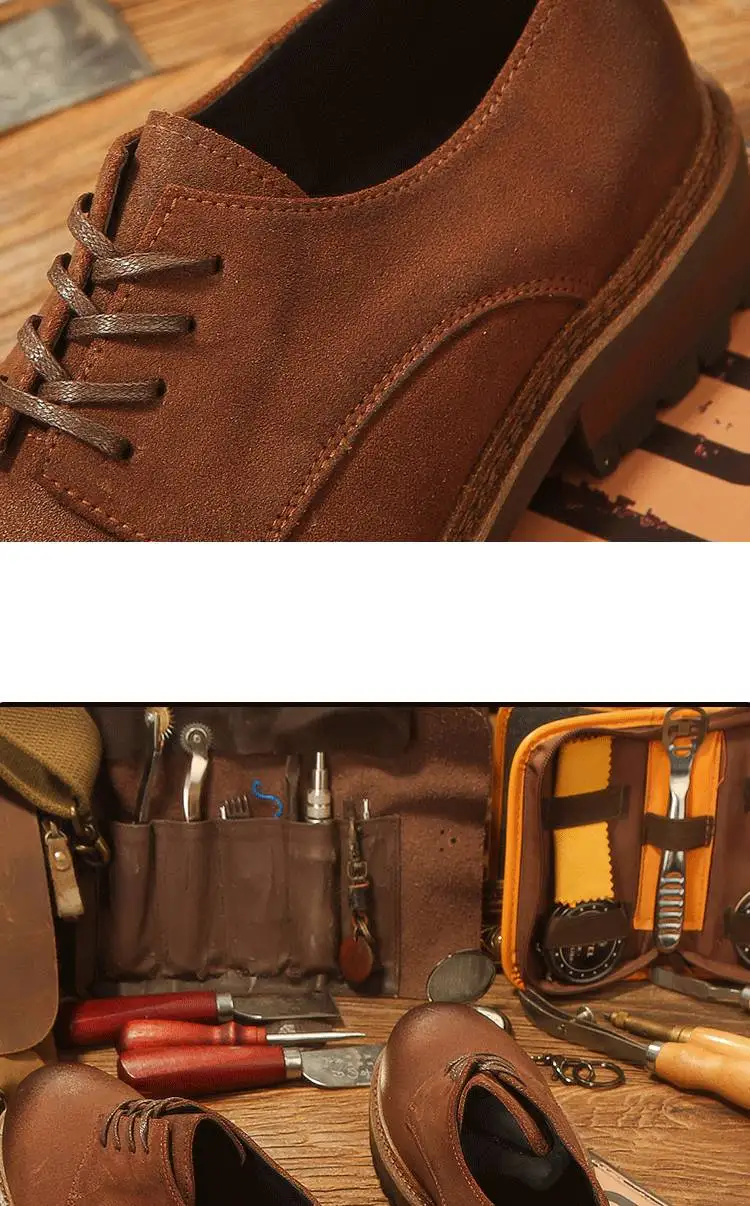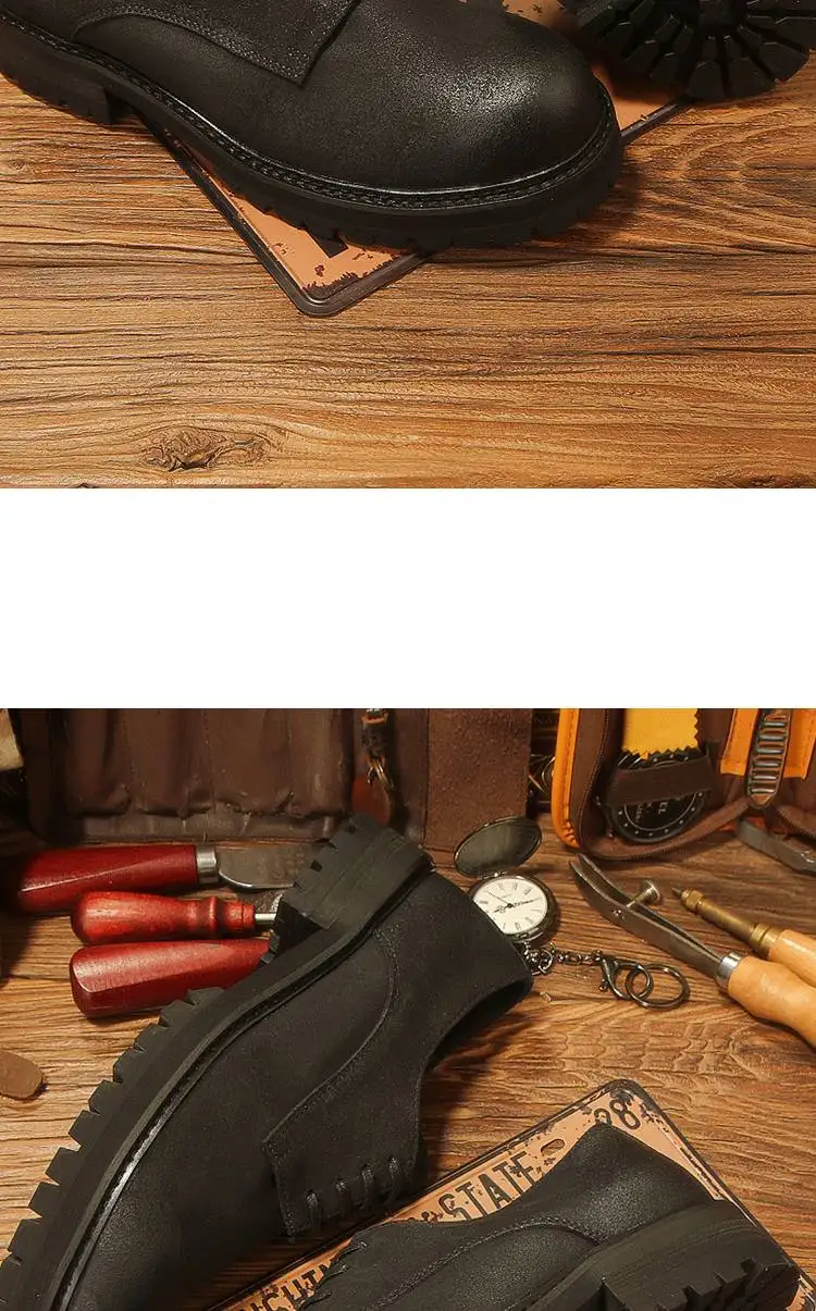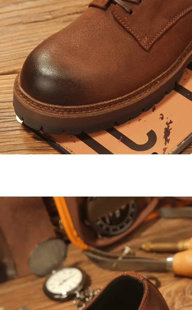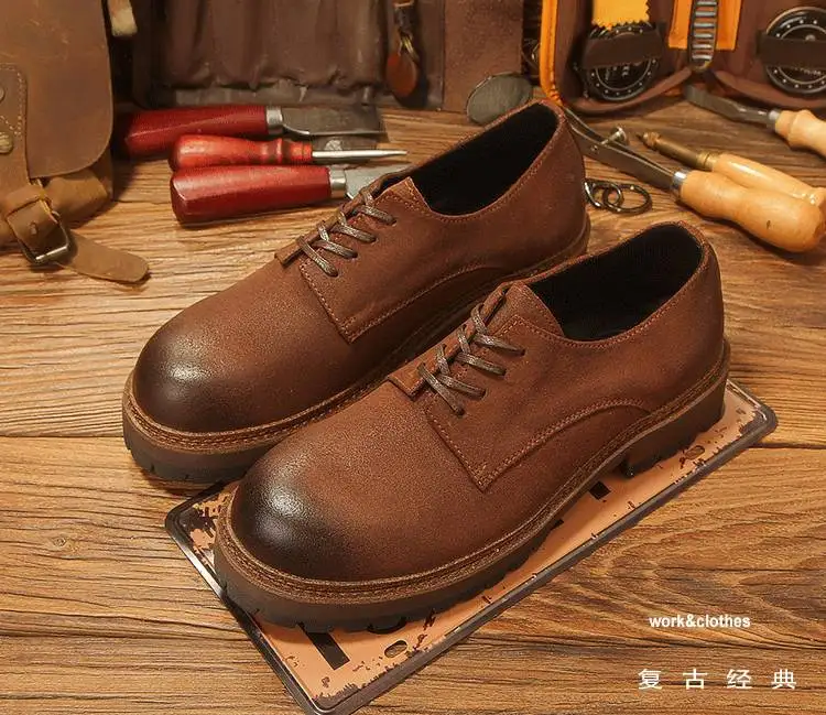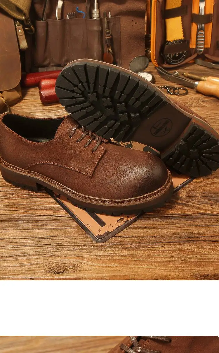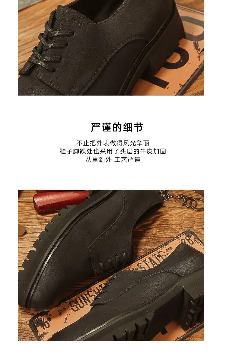 休閒磨砂大頭皮鞋 男士工裝鞋 復古英倫風厚底德比鞋