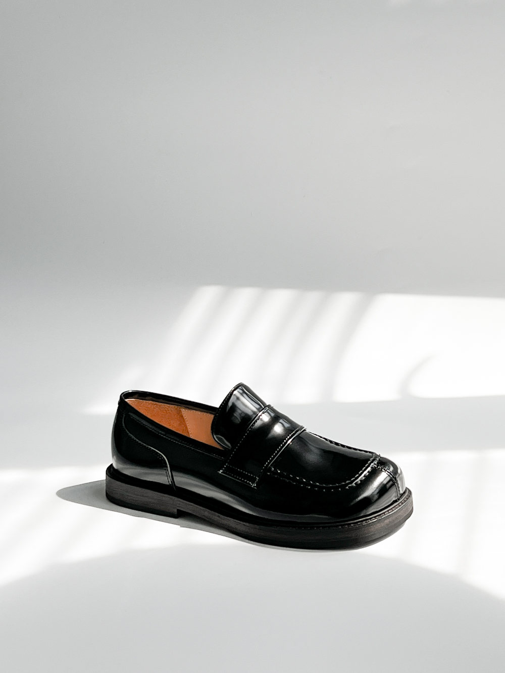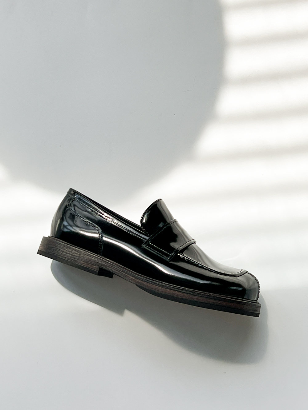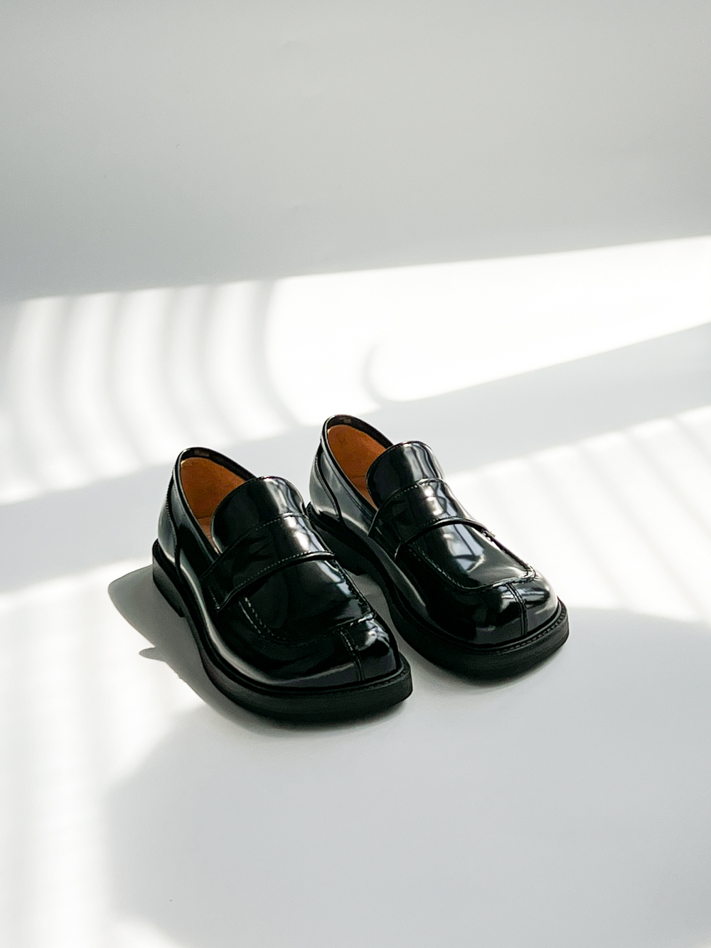 鞋頭造型飽滿,鞋身立體挺拔,內部空間鬆弛,適合各種腳型。鞋面造型工藝復雜,不規則狀的大圓頭設計,區別於市面上眾多樂福鞋