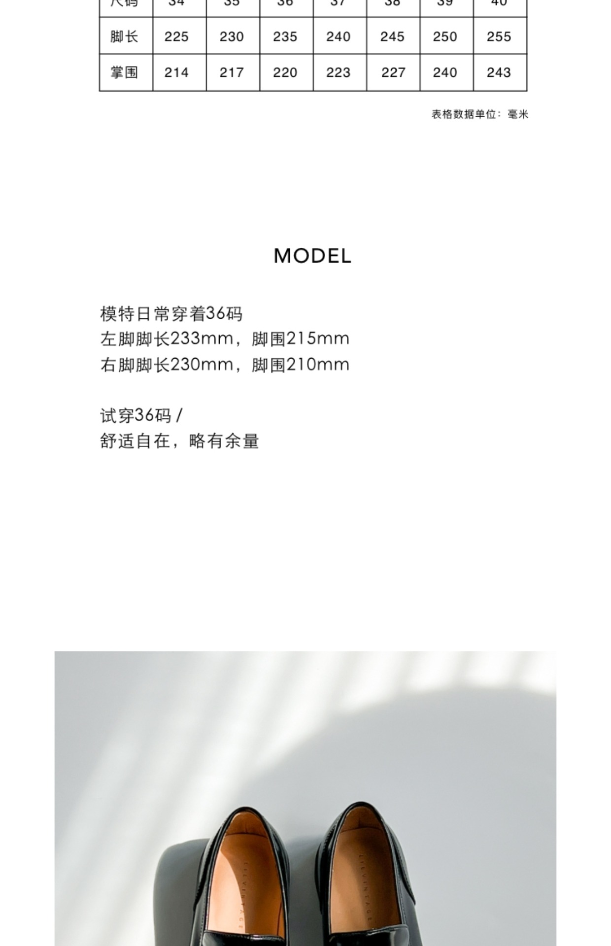 SIZE 36: 腳長 235 / 掌圍 220