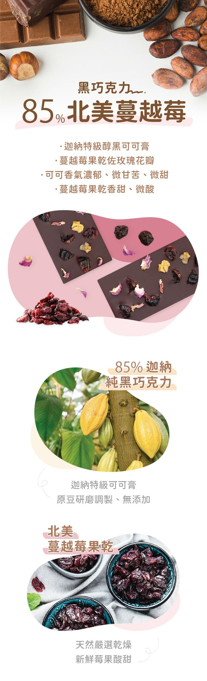 成分:可可膏、北美蔓越莓、砂糖、玫瑰花瓣、可可脂