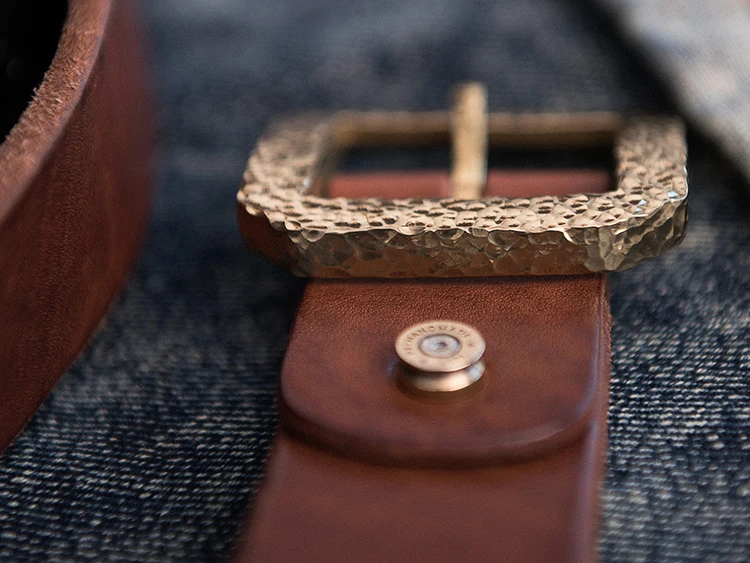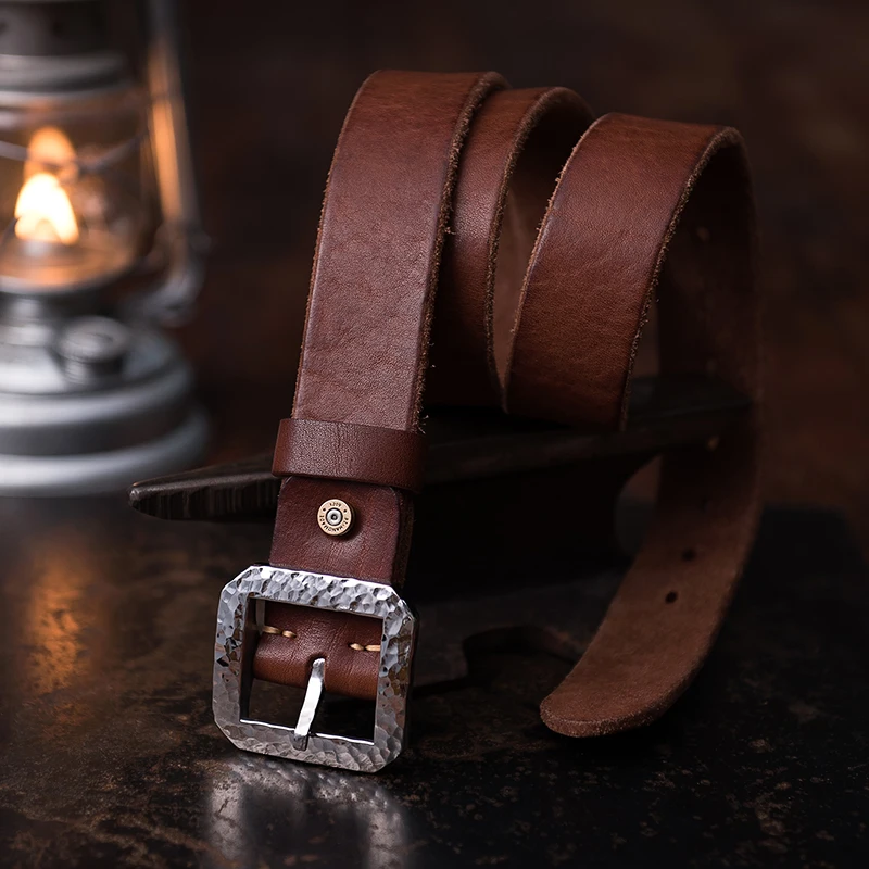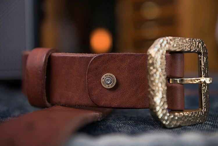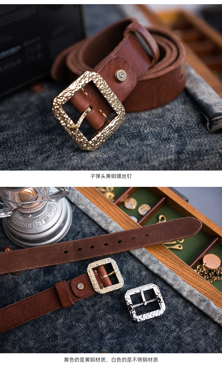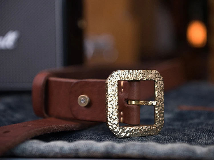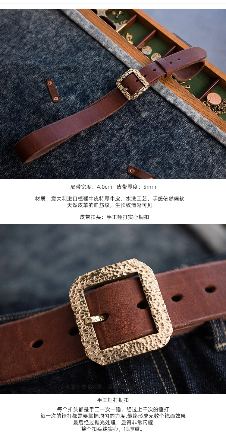 手工錘打實心黃銅扣 男士真皮皮帶腰帶3.8寬
