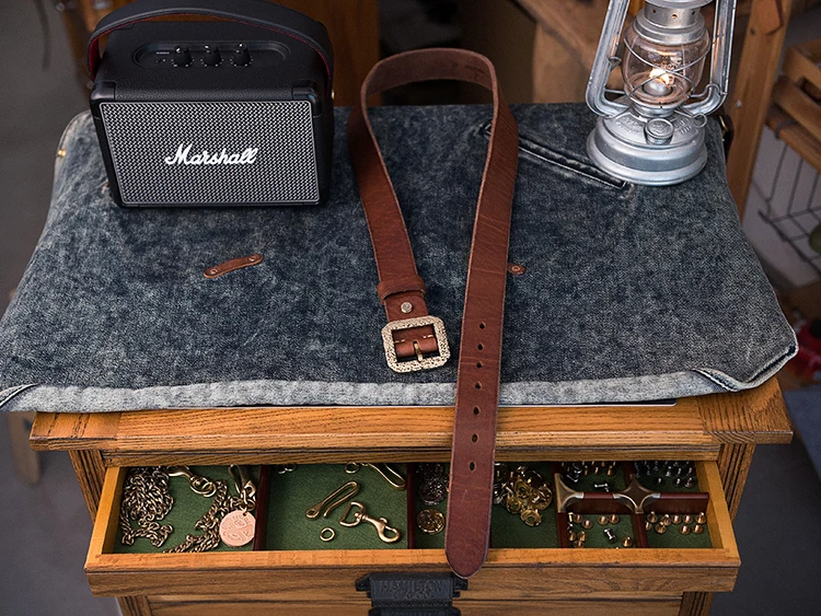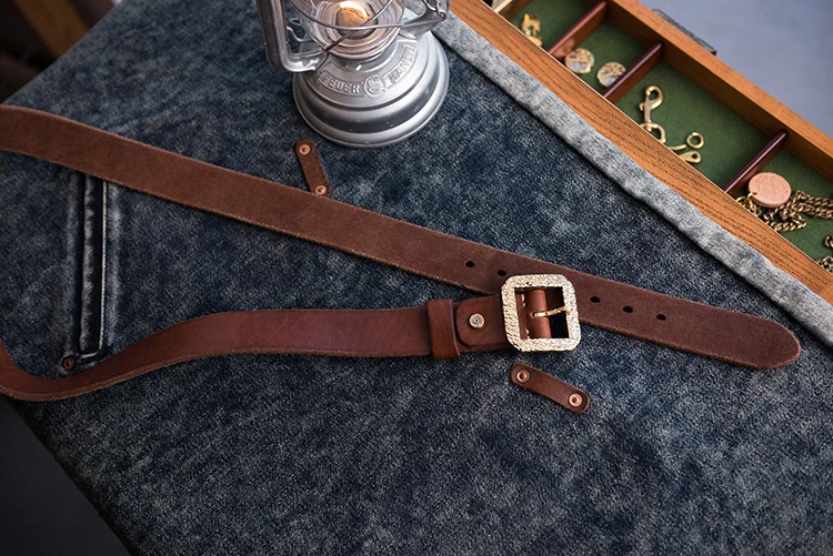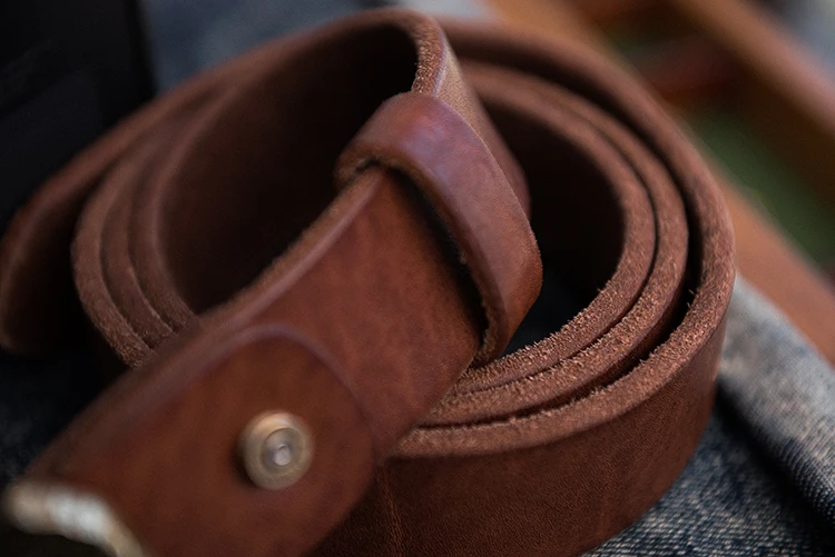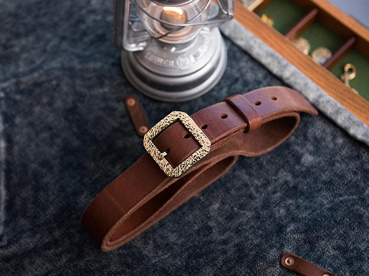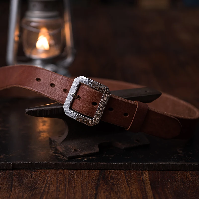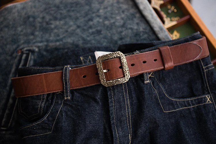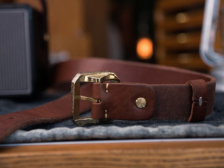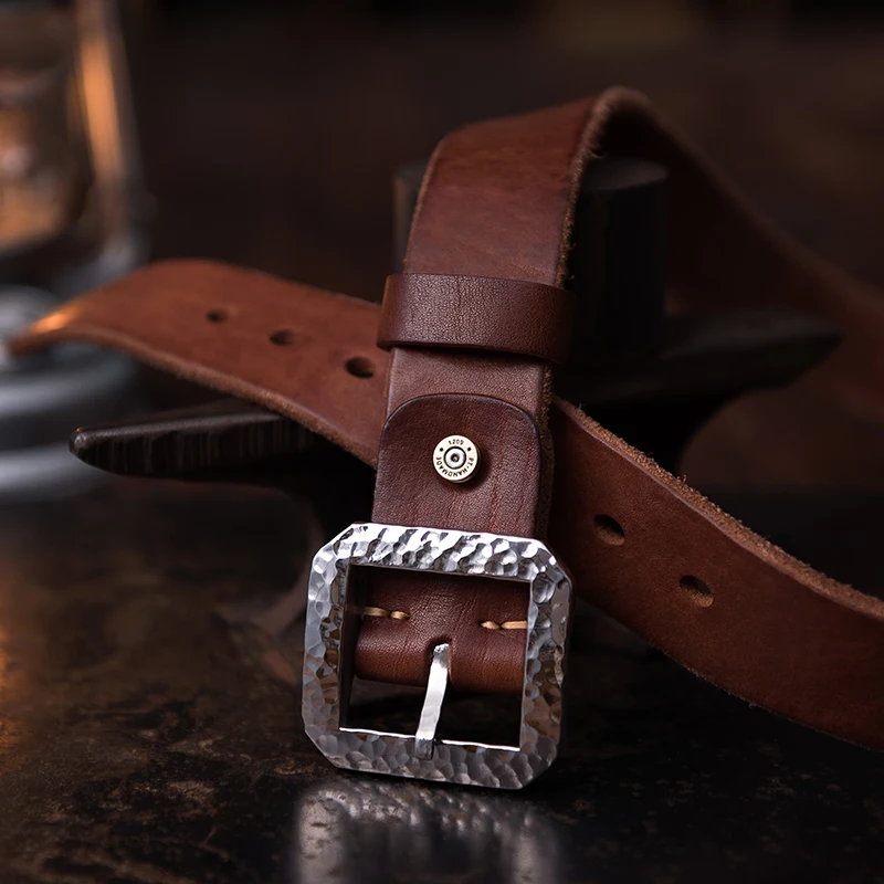 手工錘打實心黃銅扣 男士真皮皮帶腰帶3.8寬