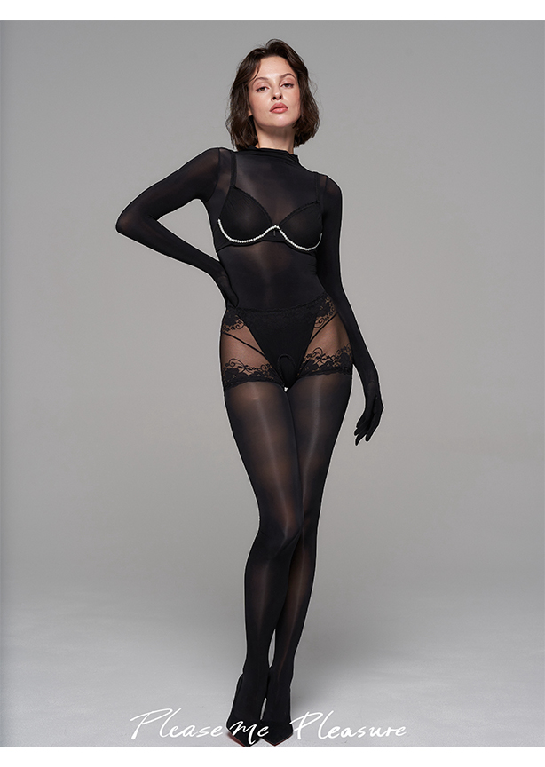 識謎PMP 蕾絲一體式絲襪開襠款超細膩性感提臀防勾絲純欲連褲襪