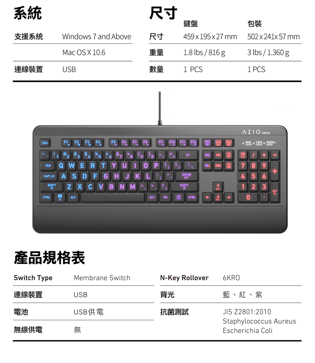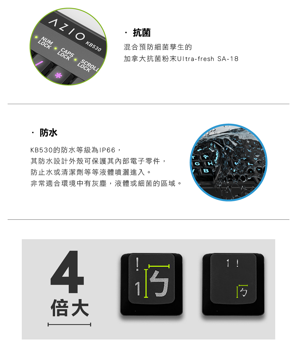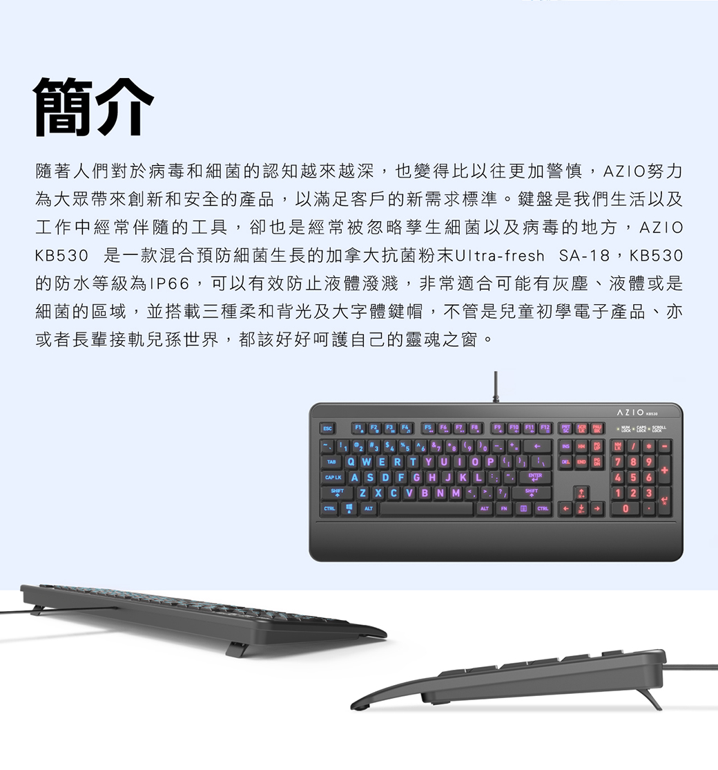 AZIO抗菌可水洗鍵盤(防水鍵盤/可酒精擦拭/注音大字體)