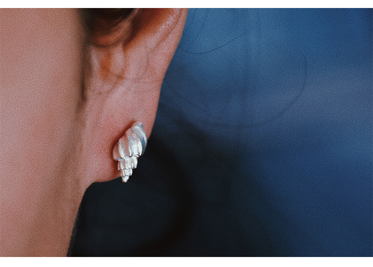 ▲介紹:以海螺為設計造型,材質S925銀,包含純銀耳堵,贈送擦銀布、首飾盒和備用硅膠耳堵。
