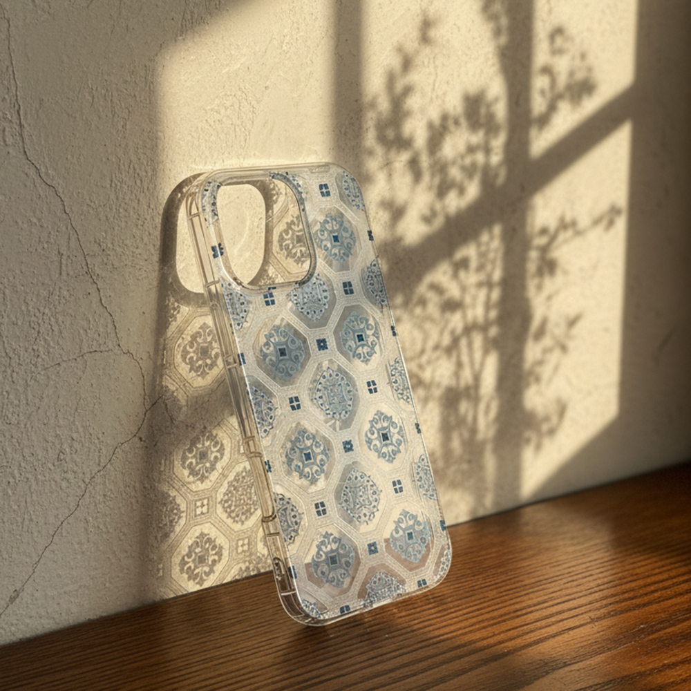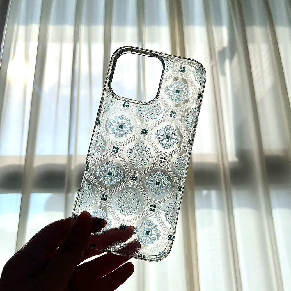 灰瓷藍雲紋搭配若隱若現的八角花磚紋,
