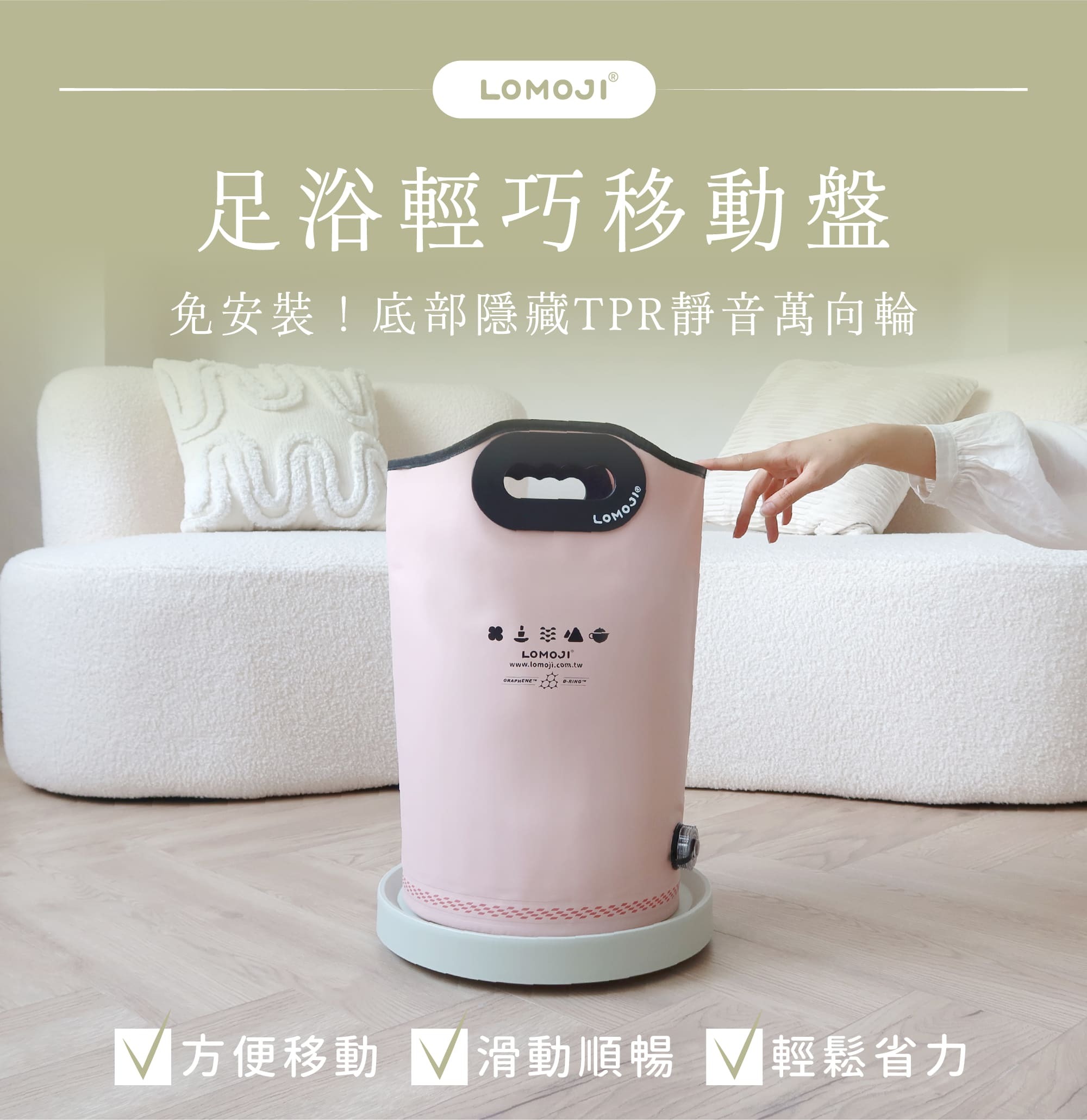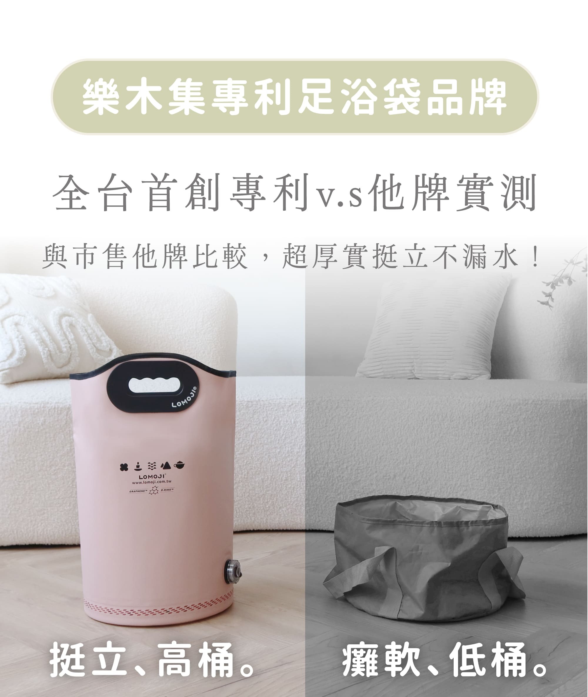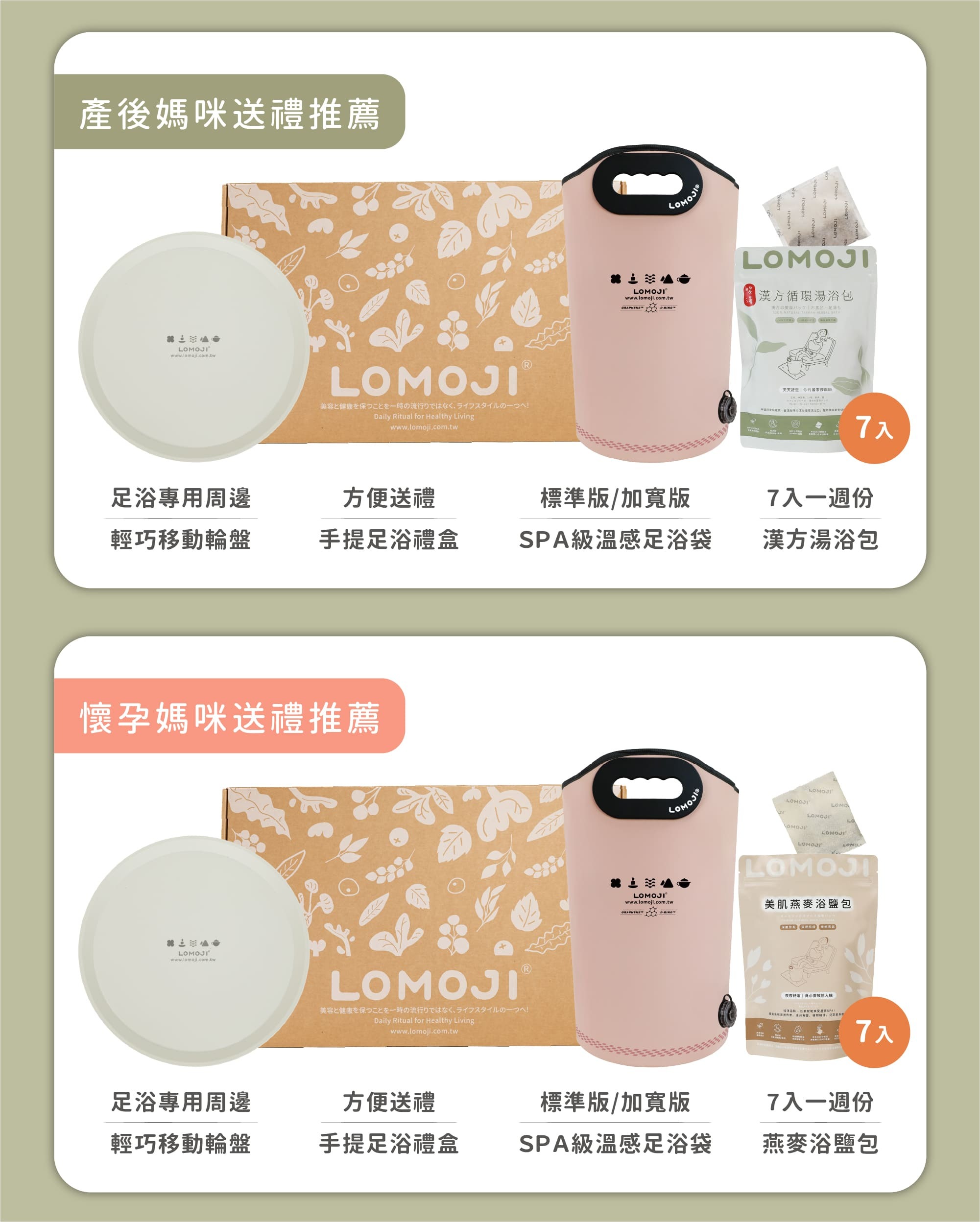 ①足浴袋(標準版: 石墨綠、裸粉玫瑰|加寬版:極致灰、法式奶油黃)