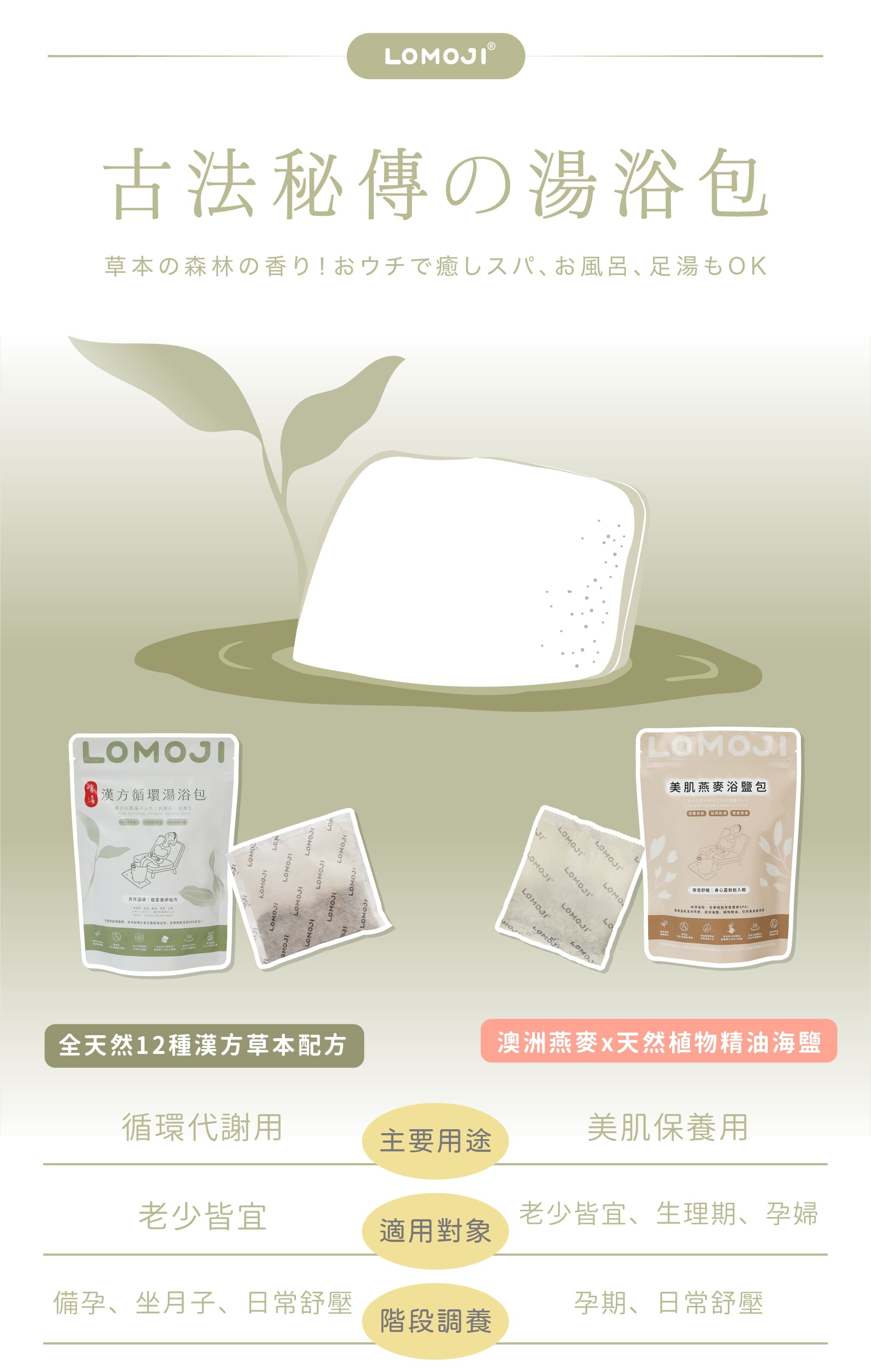 成 分│ 精油沐浴鹽、食用級燕麥粉、青茶茶葉