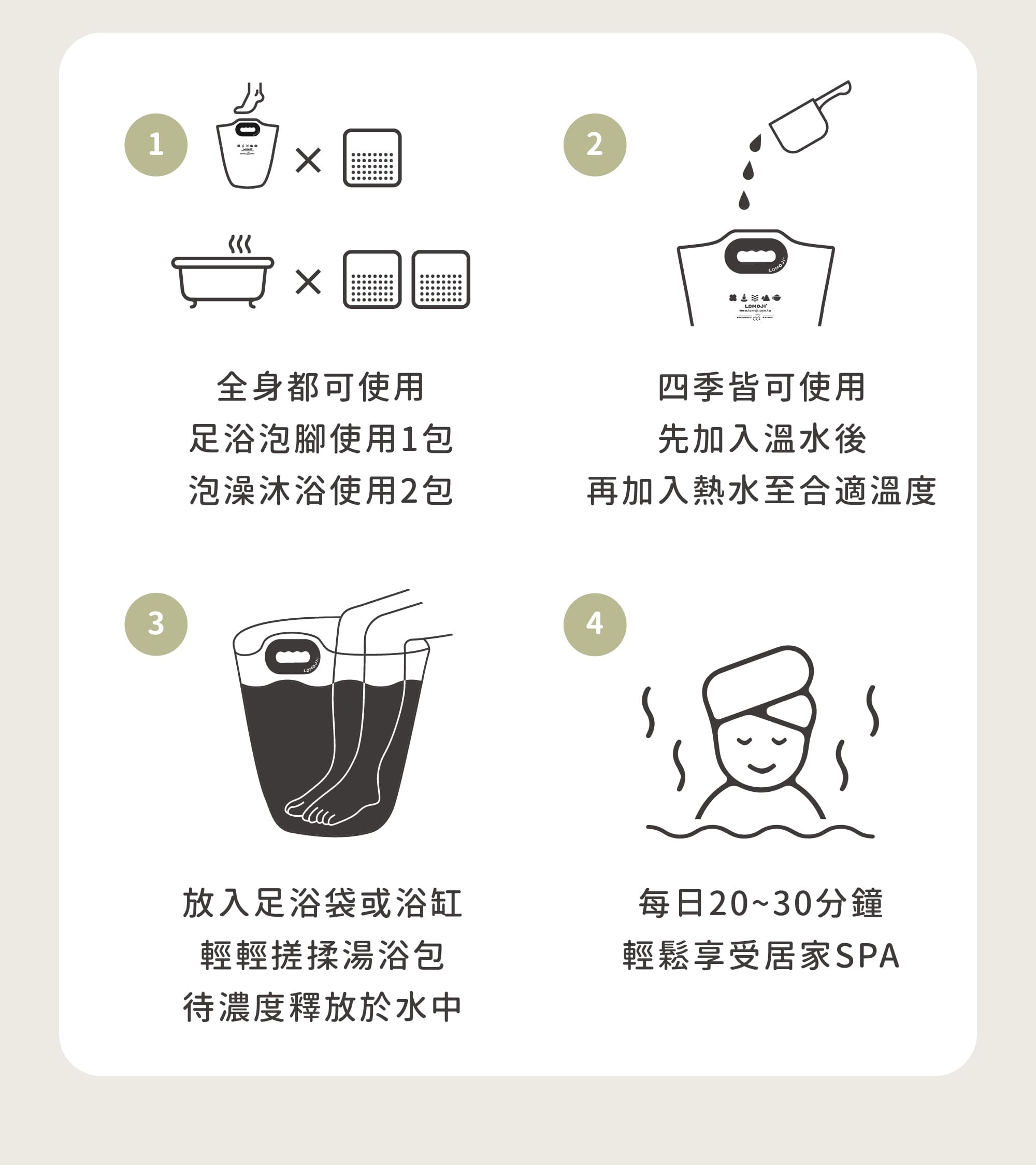 使用說明|足浴袋耐熱度為70度,請安全使用,小心燙傷! (切勿直接加入滾燙熱水於足浴袋內)