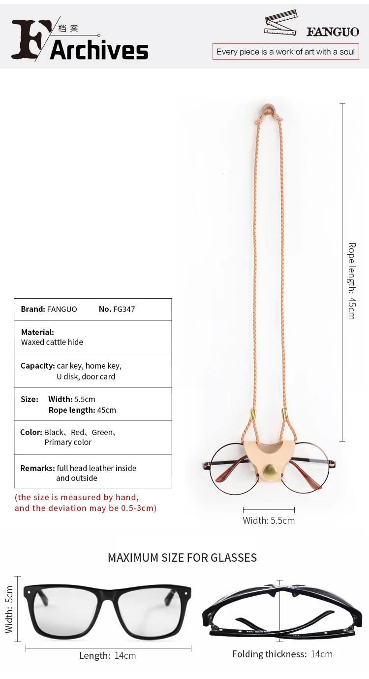 手工縫制 頭層牛皮眼鏡掛繩 復古皮革眼鏡掛繩