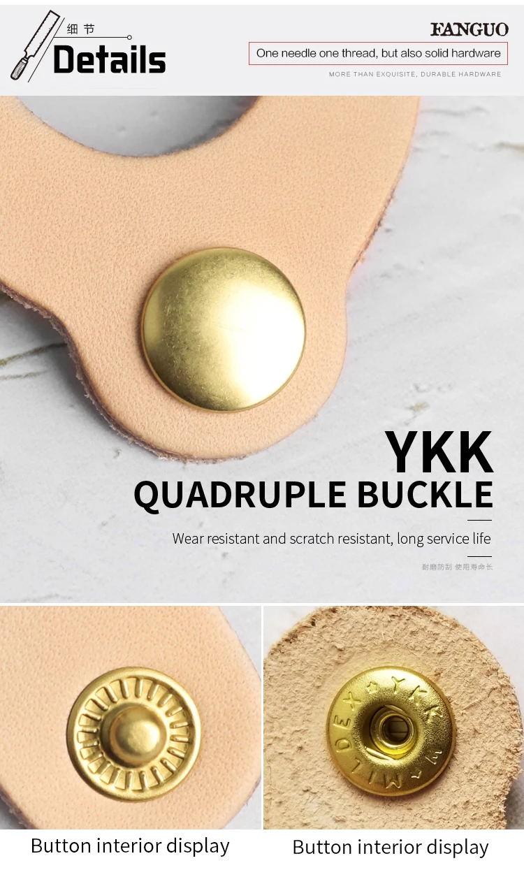 我們選用優質復古頭層牛皮製作,牛皮本身會存在一些天然屬性,如生長紋、血筋、摩擦出的顏色變化、皮斑、紋路不均勻、蚊蟲叮咬,均不屬於質量問題。手工製作的過程中,也會常常留下指甲印、刮痕、壓印、打磨痕跡等等問題,也不屬於質量問題。