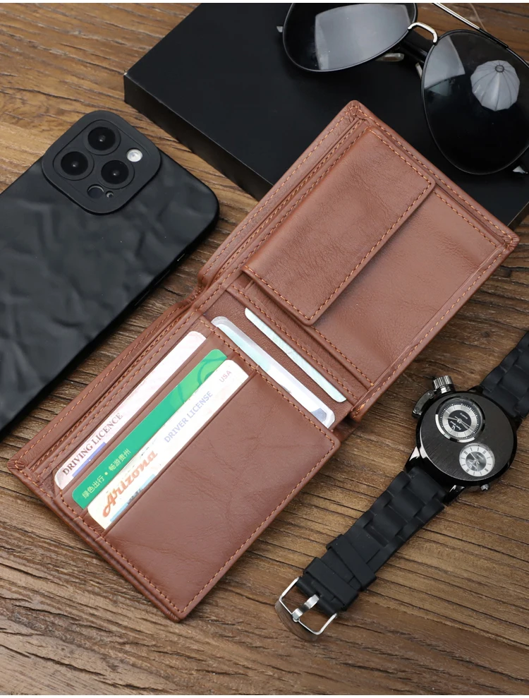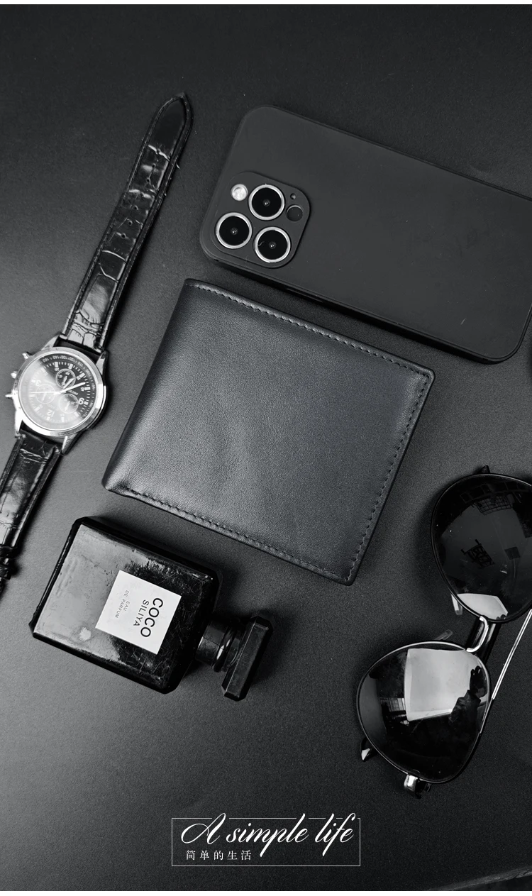 真皮短錢包皮夾 橫款錢包短夾 商務簡約