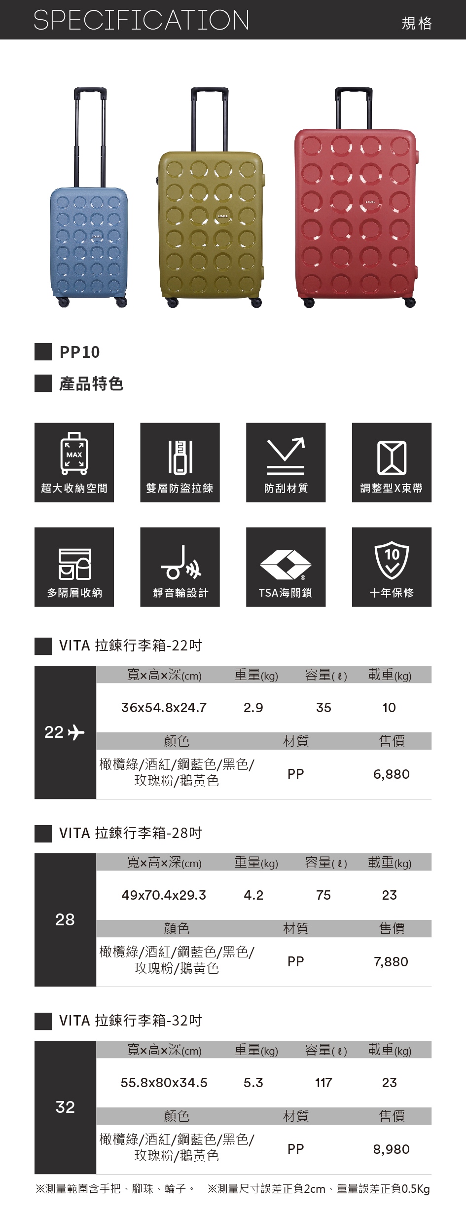 【LOJEL】VITA 32吋 PP材質 雙齒防盜防爆拉鍊箱 黑色