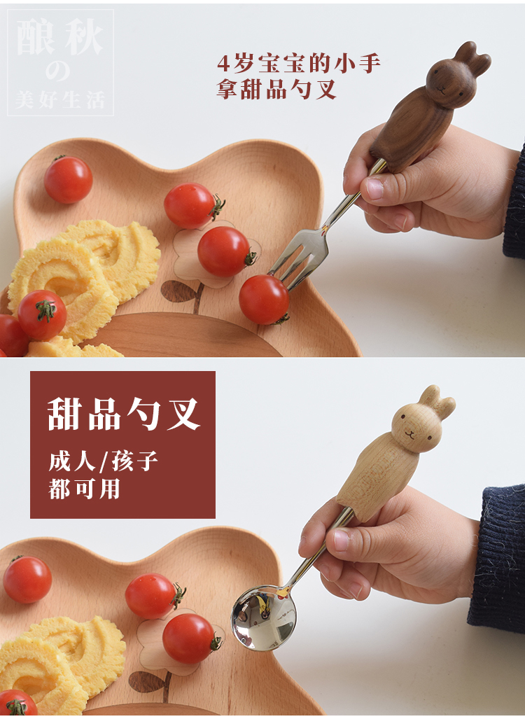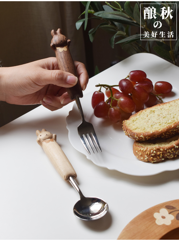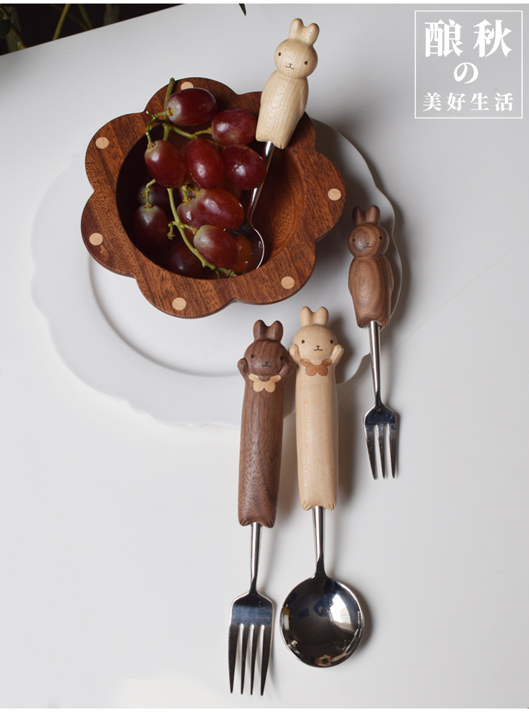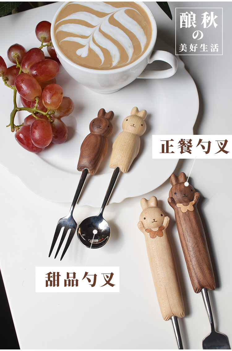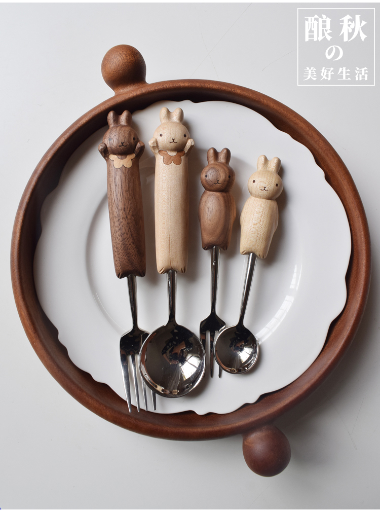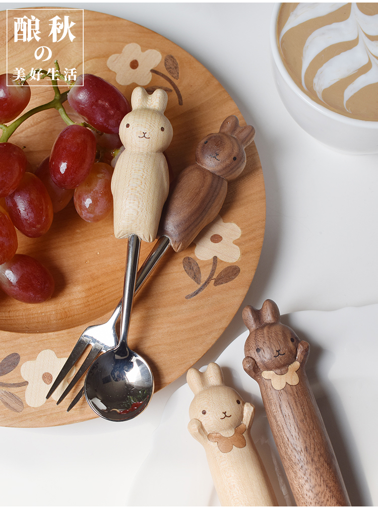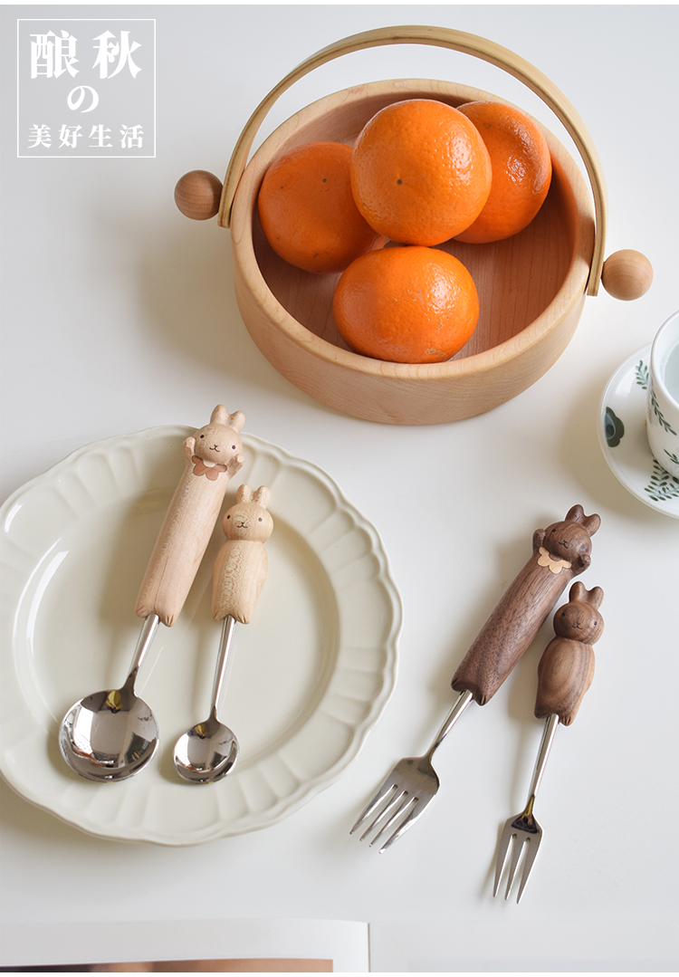喵有型可愛兔子勺叉套裝兒童餐具甜品沙拉水果西餐不鏽鋼勺子叉子