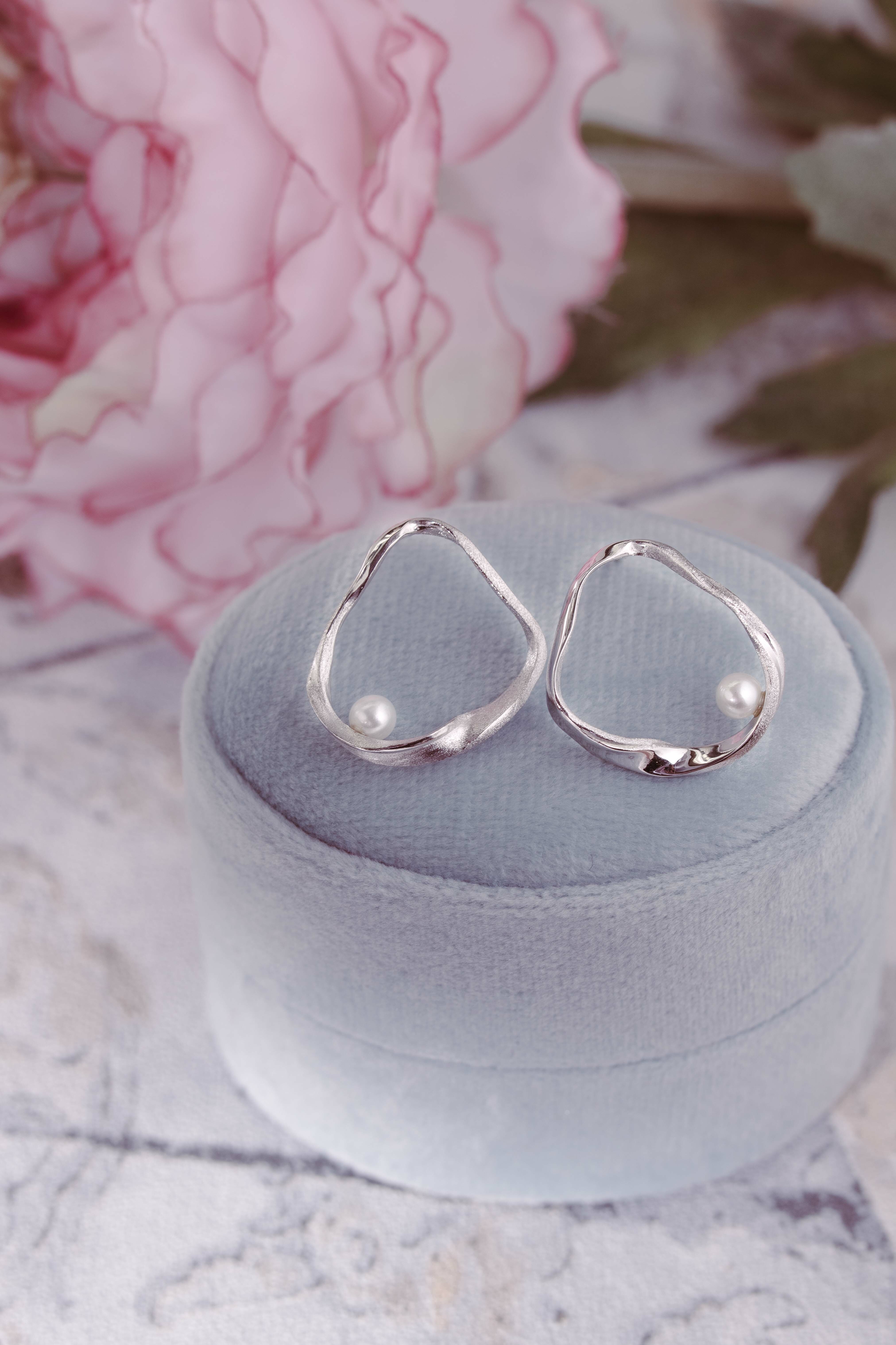 這是一款日常簡約款,設計特別在彎曲之處以霧亮面交錯,加以珍珠點綴。