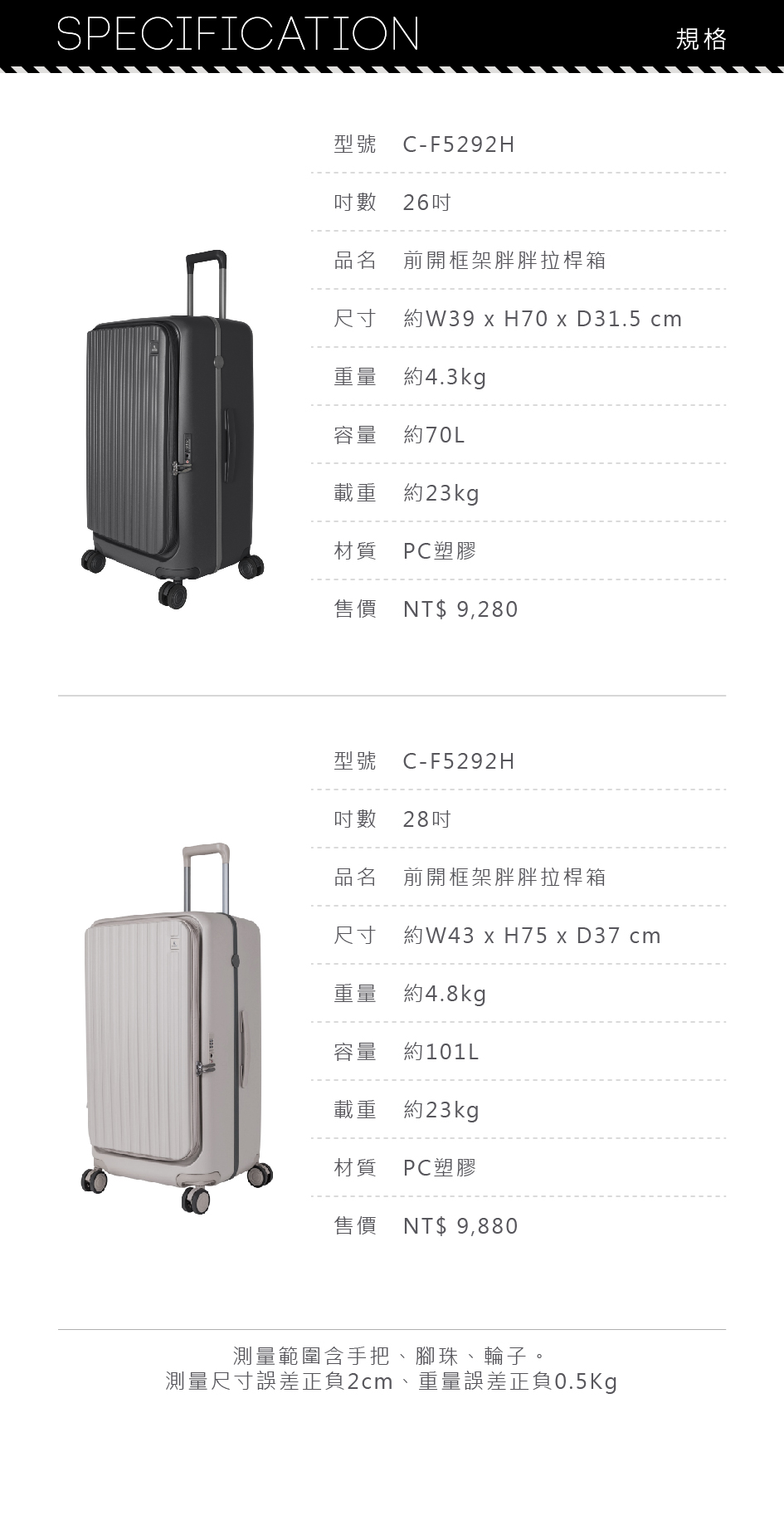 【CROWN】28吋 BOXY 前開框架胖胖拉桿箱 託運箱 燕麥奶茶色