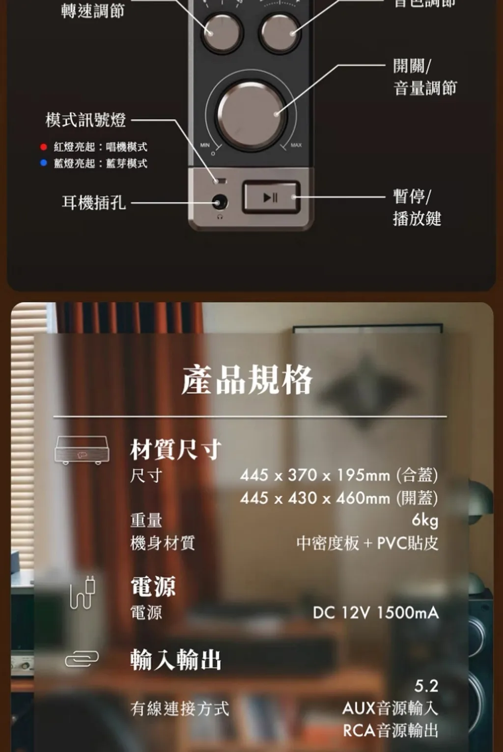除了傳統的黑膠播放功能,這款播放機還支援藍芽接收連結,讓您能夠輕鬆連接音源裝置,作為無線藍芽喇叭使用,自由地享受音樂。無線連接帶來更大的自由度,讓您在運動、旅行或者在家中都能盡情欣賞喜愛的音樂。