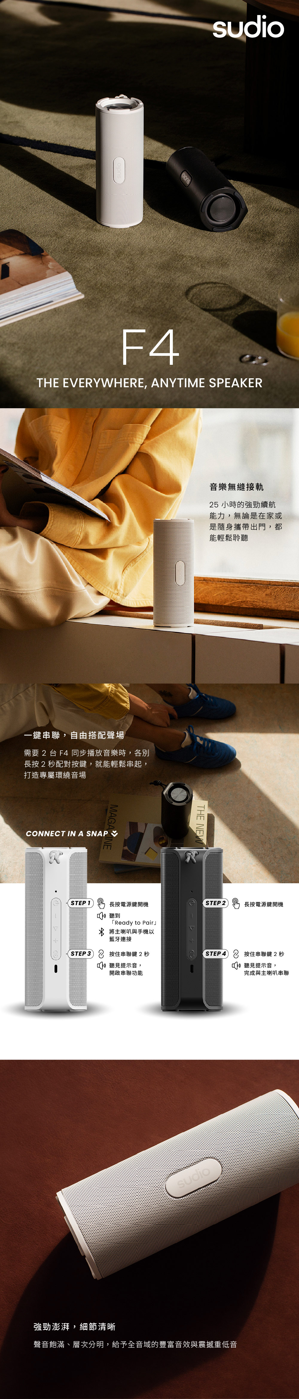 Sudio F4 藍牙喇叭 - 白色 (可串聯)【現貨】