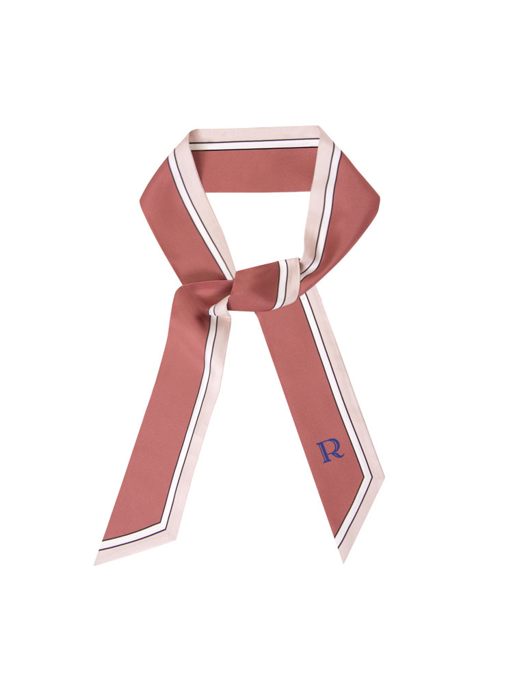 retar 妃紅緞帶式長條絲巾簡約復古髮帶腰帶桑蠶絲真絲圍巾