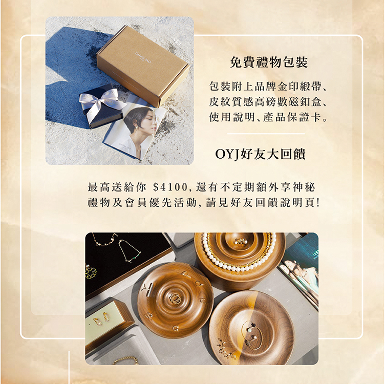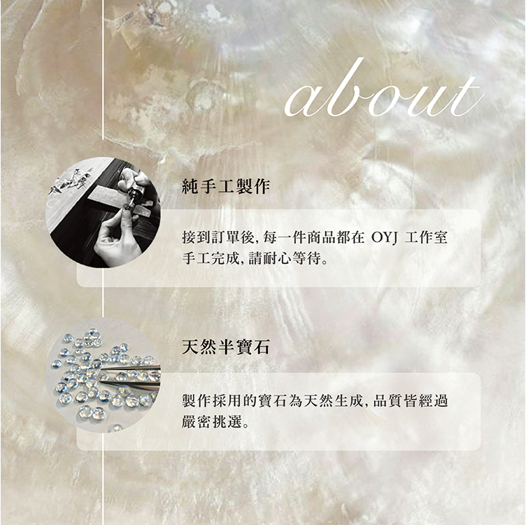 OYJ 首飾皆為接單訂製,恕無法接製急單,詳細天數以網站購買須知最新消息為主(預購例外)。完成後將依照訂單順序出貨,感謝您的耐心等候,若有其他需求請事先我們連繫。