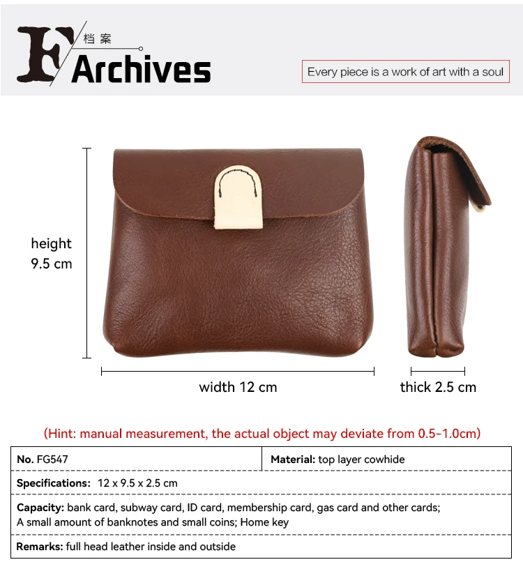 我們選用優質復古頭層牛皮製作,牛皮本身會存在一些天然屬性,如生長紋、血筋、摩擦出的顏色變化、皮斑、紋路不均勻、蚊蟲叮咬,均不屬於質量問題。手工製作的過程中,也會常常留下指甲印、刮痕、壓印、打磨痕跡等等問題,也不屬於質量問題。