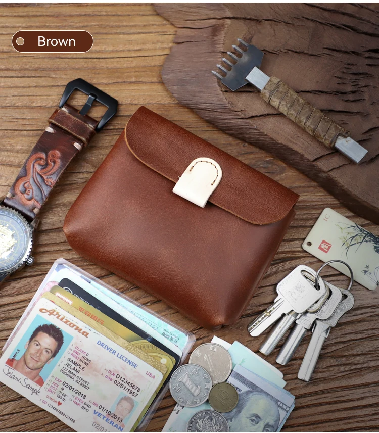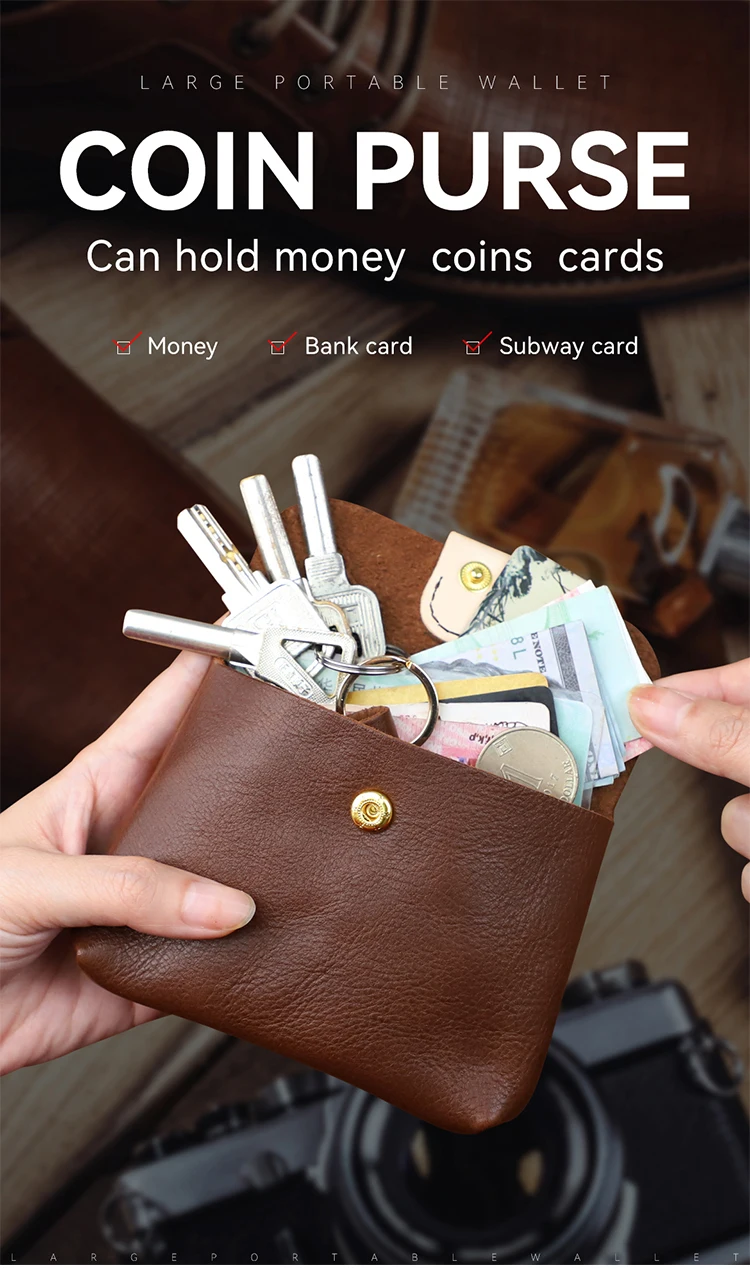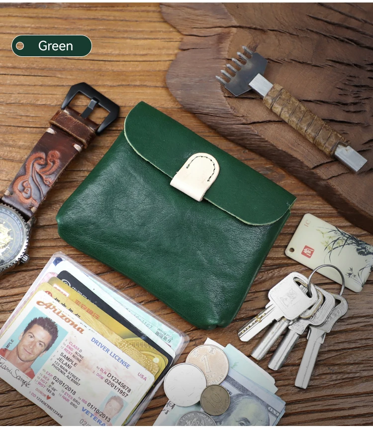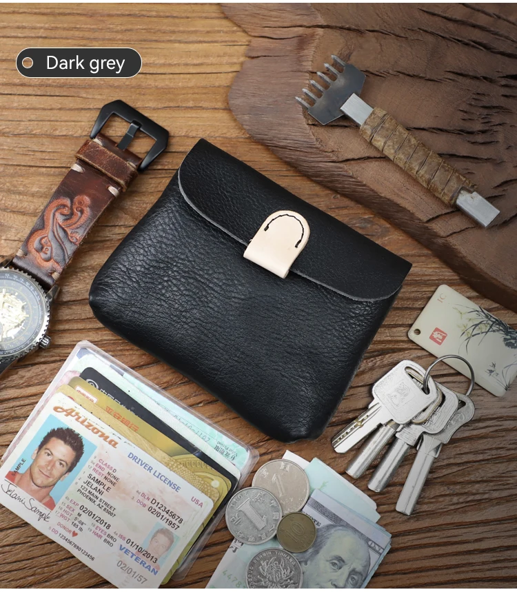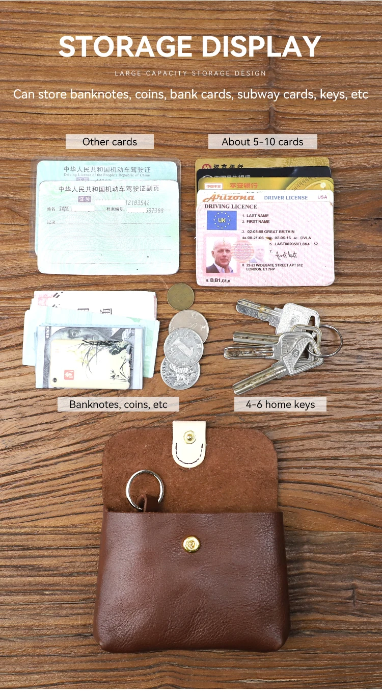 可愛軟皮收納卡包 頭層牛皮鑰匙零錢包 多色可選