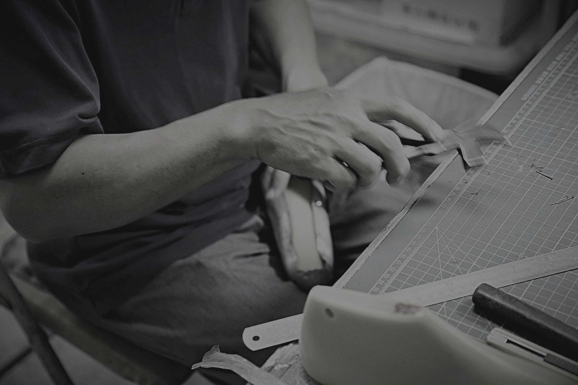 ▲師傅專注,先挑選符合材質,進行裁切,整體鞋口隱藏綁帶,包覆車縫針法。保留芭蕾靈魂,以追求完美的出發點,宛如芭蕾女伶內心的企圖,挑戰與渴望。