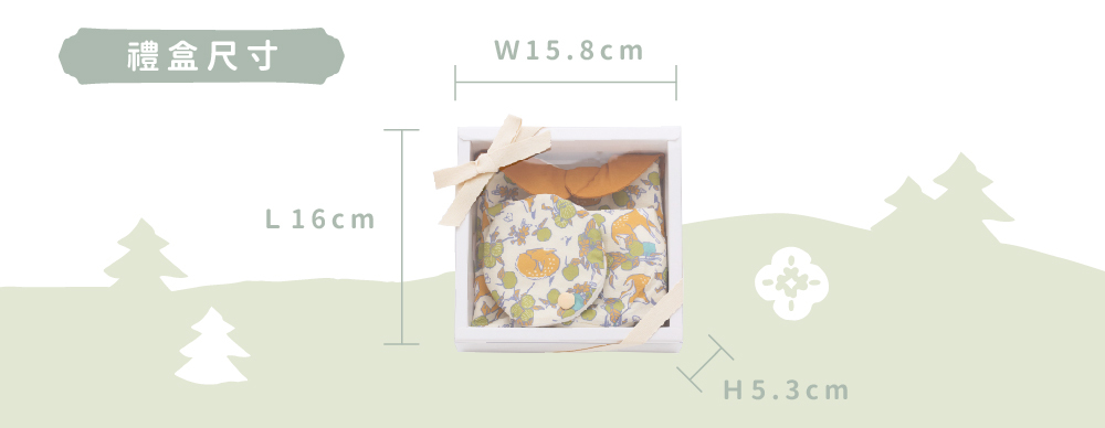 寶寶彌月禮盒精選3件組:奶嘴夾布套組x1、小圓領口水巾x1、花瓣帽-幼兒x1、上下蓋禮盒x1、質感緞帶x1、精美小卡X1