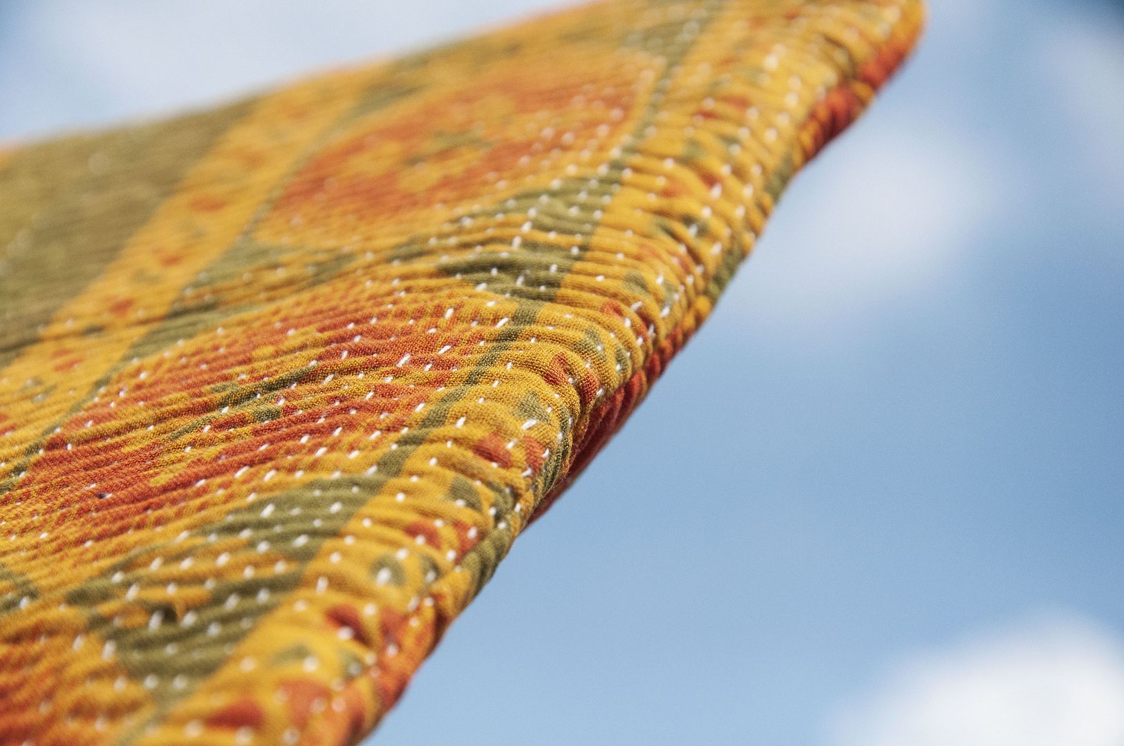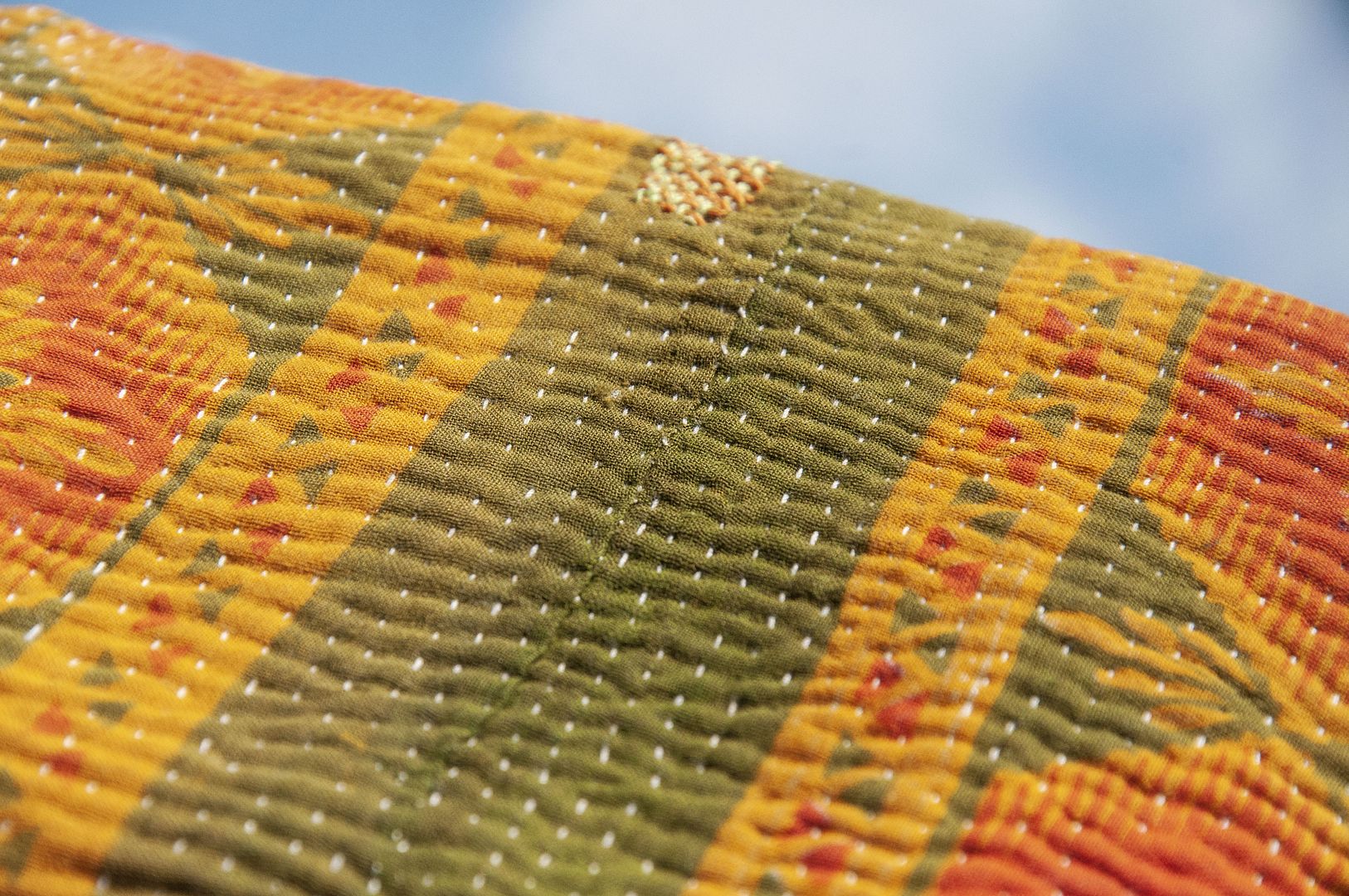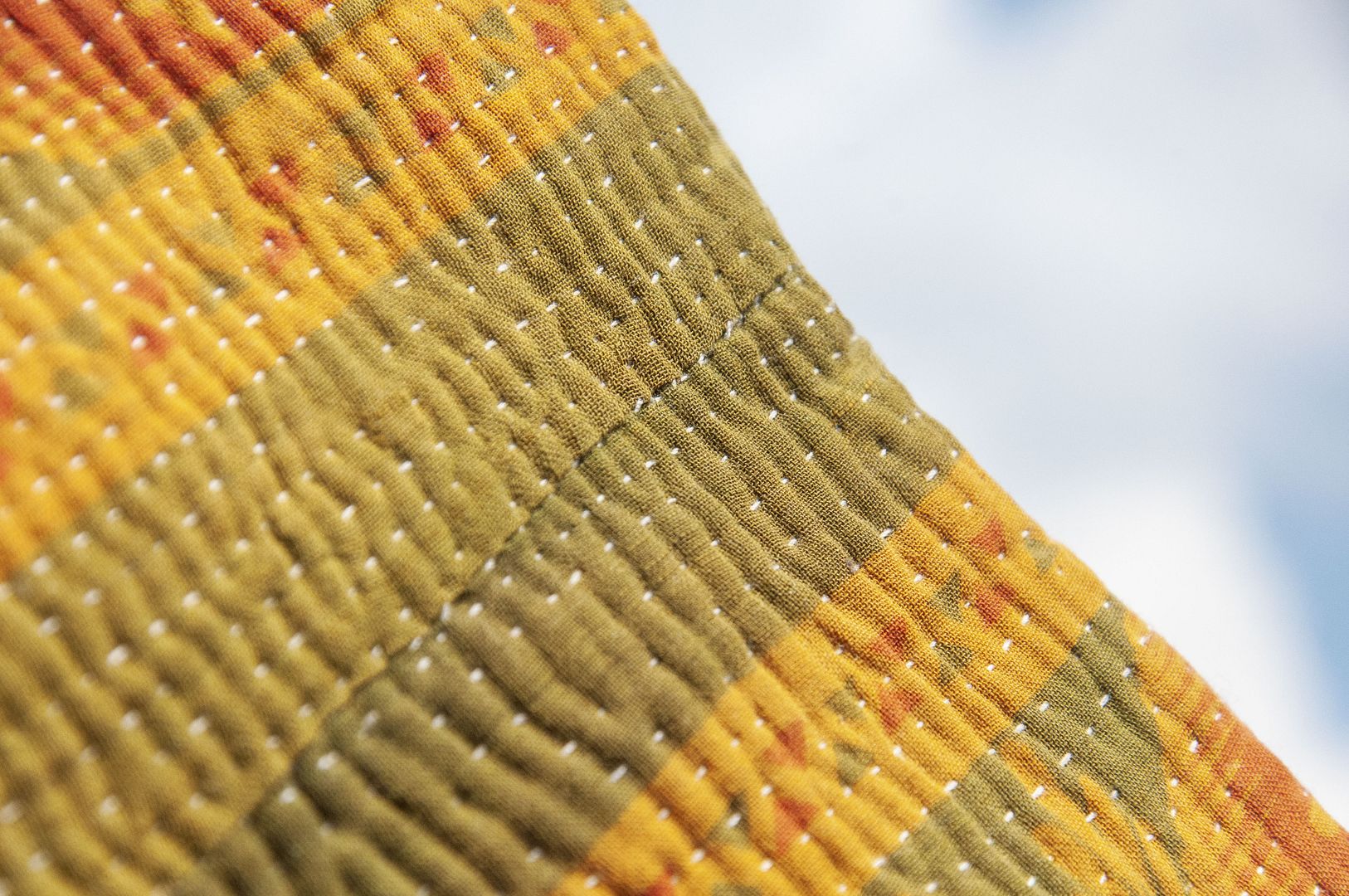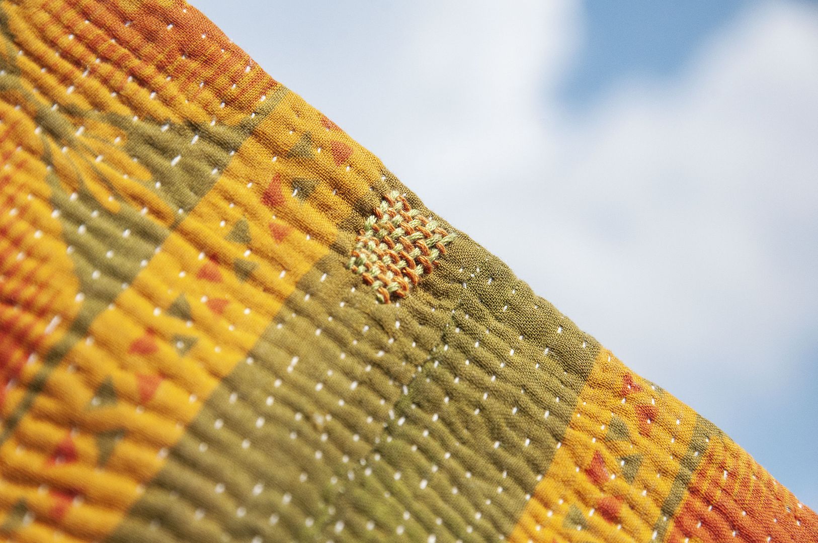 ▲來自印度沙漠地區的gudri刺繡工法,嚴選印度回收紗麗布+棉線刺繡