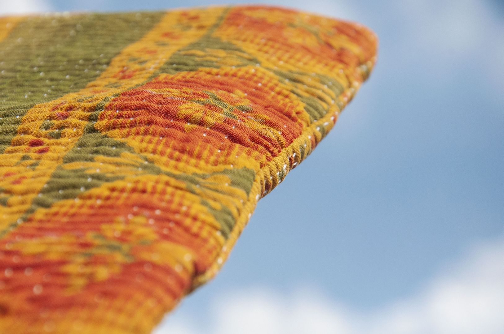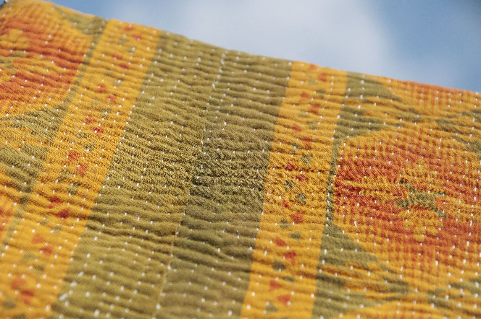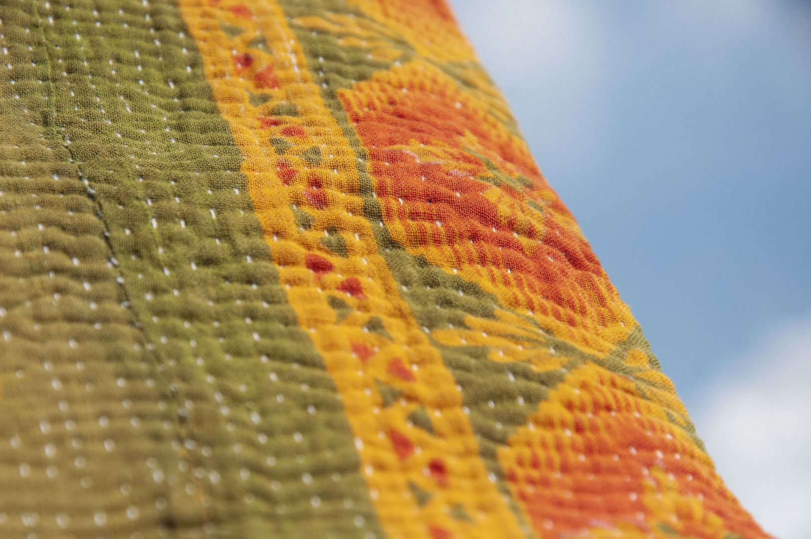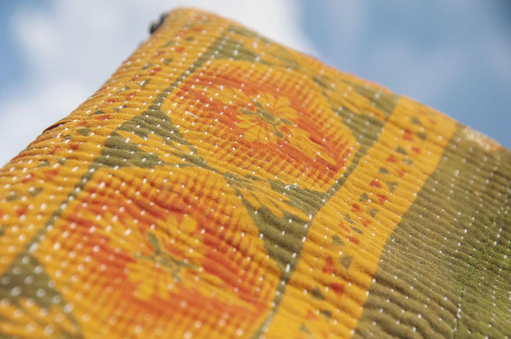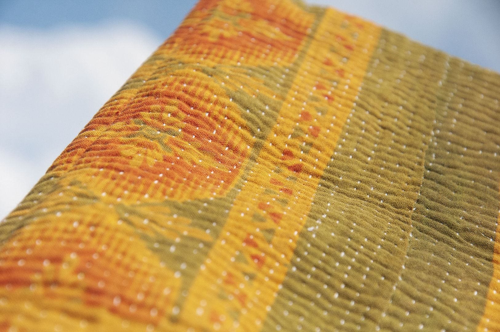 ▲來自印度沙漠地區的gudri刺繡工法,嚴選印度回收紗麗布+棉線刺繡