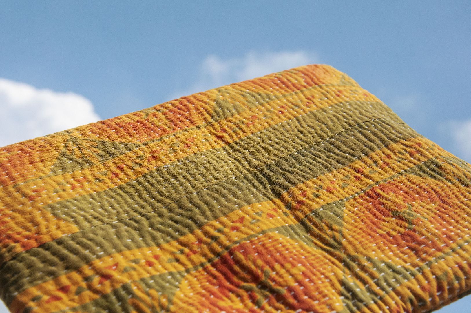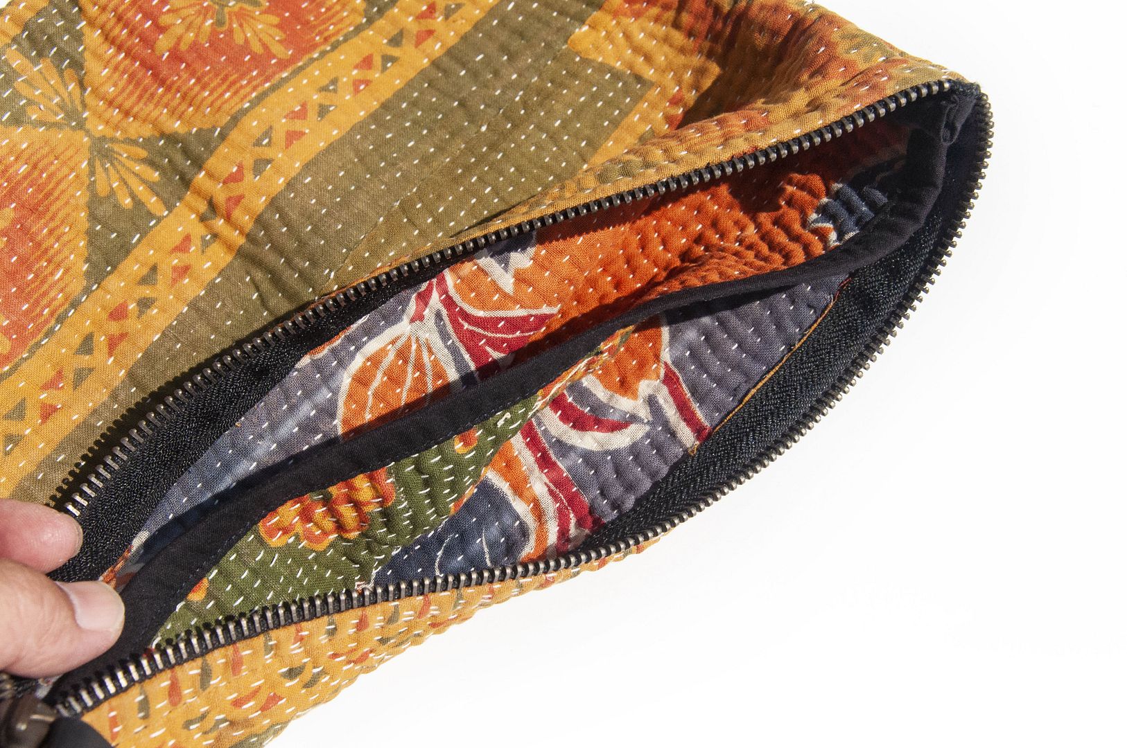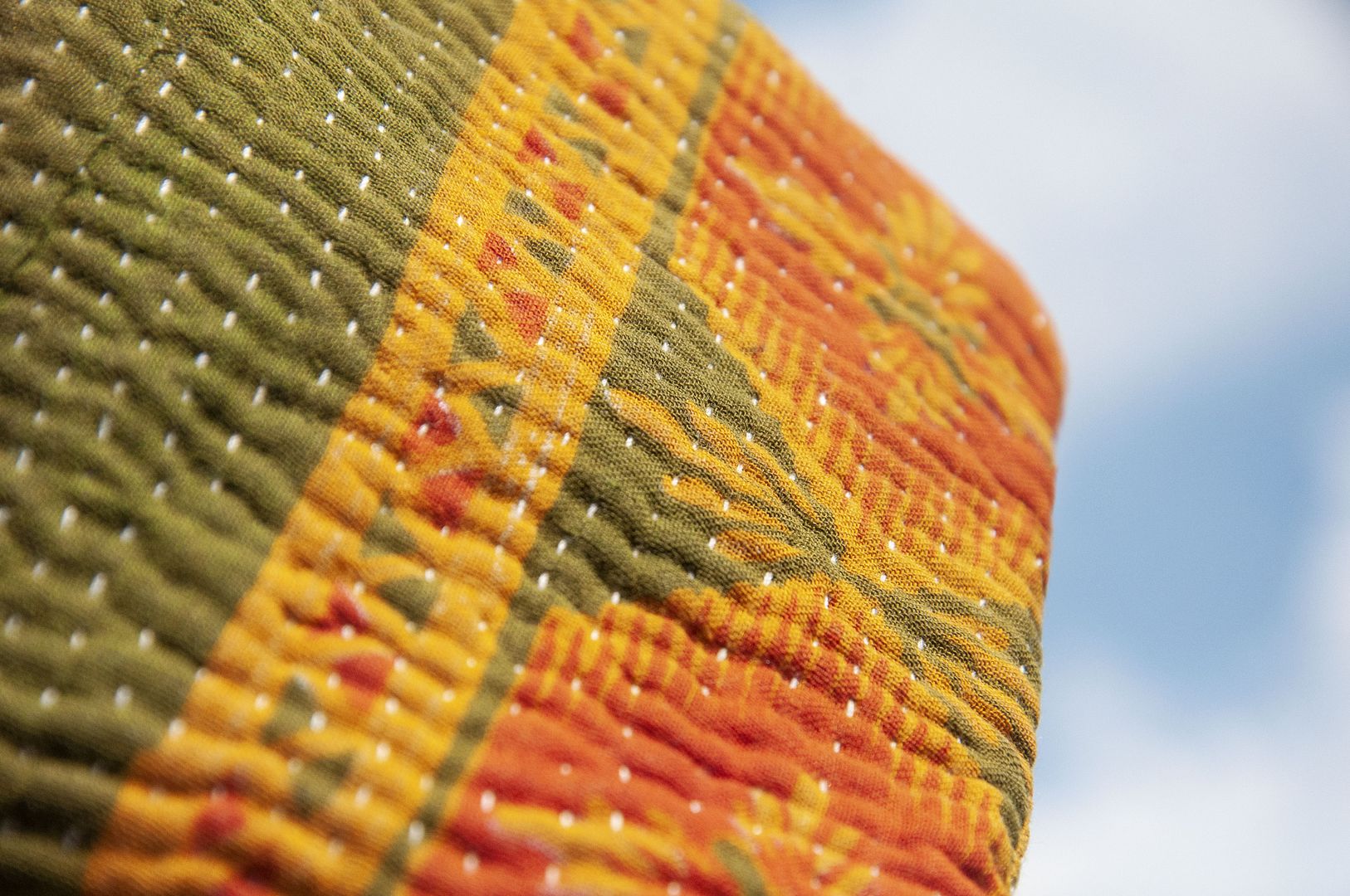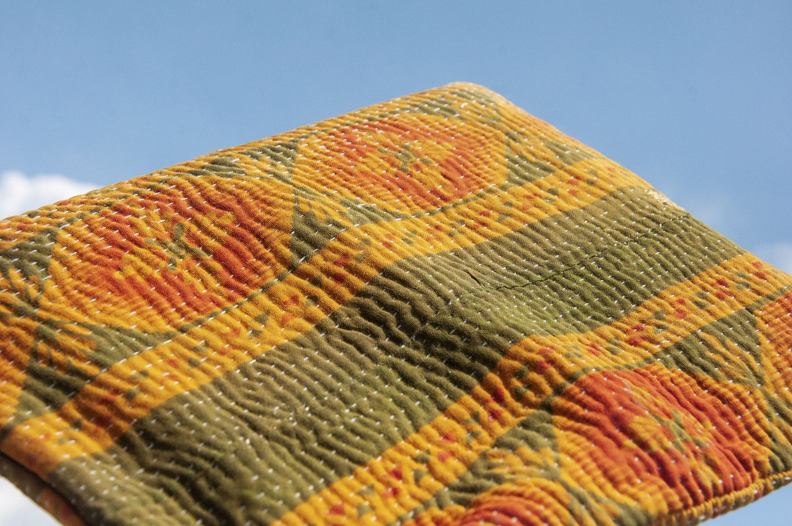 ▲來自印度沙漠地區的gudri刺繡工法,嚴選印度回收紗麗布+棉線刺繡