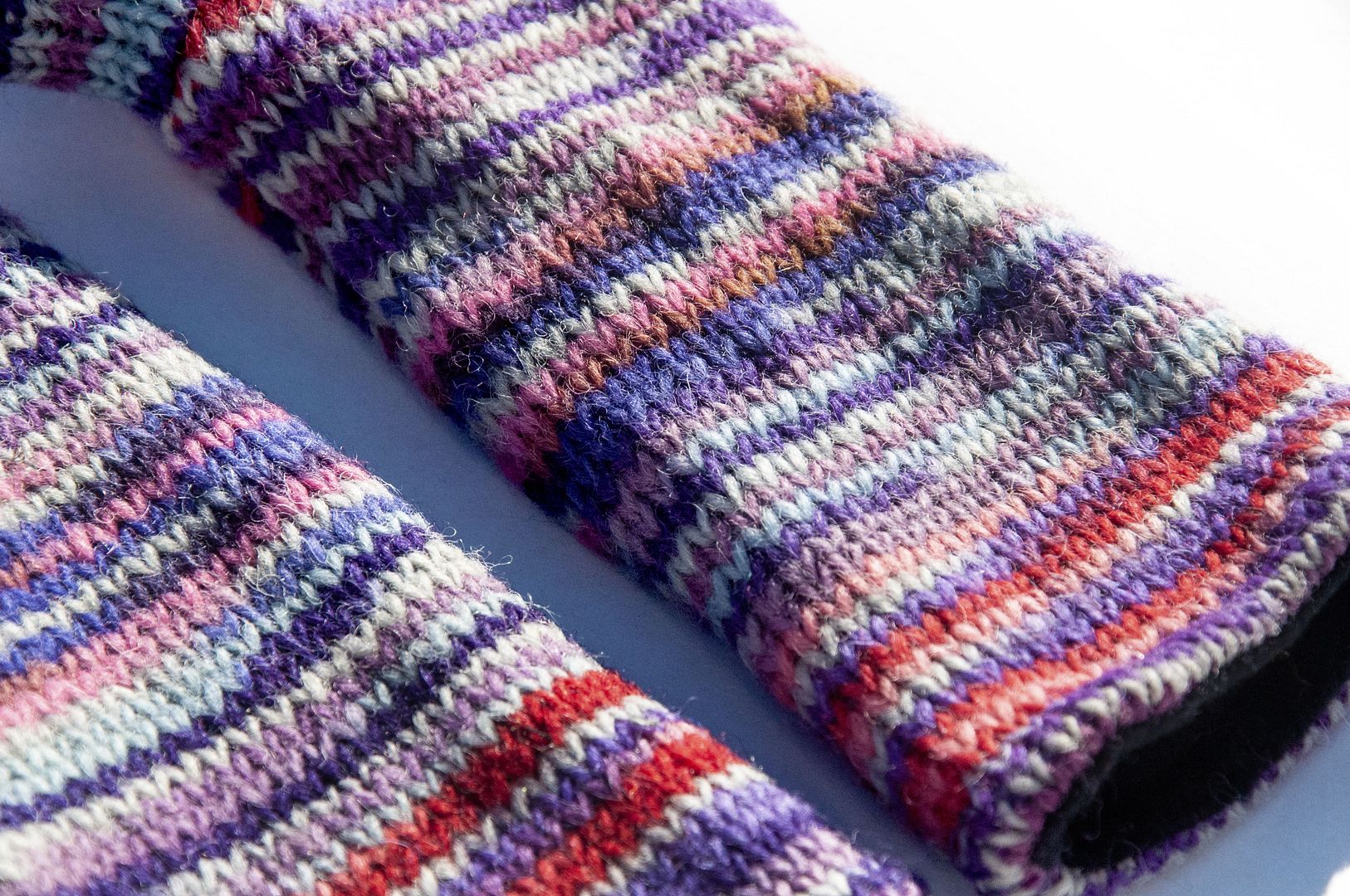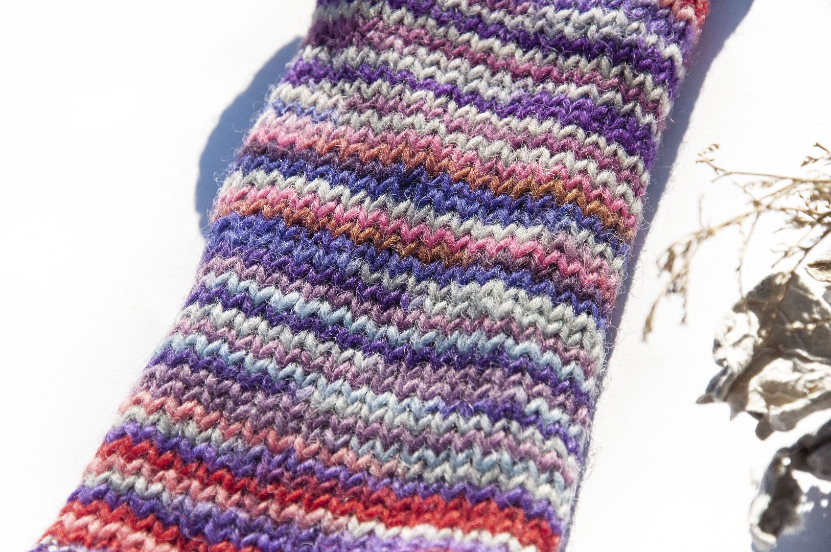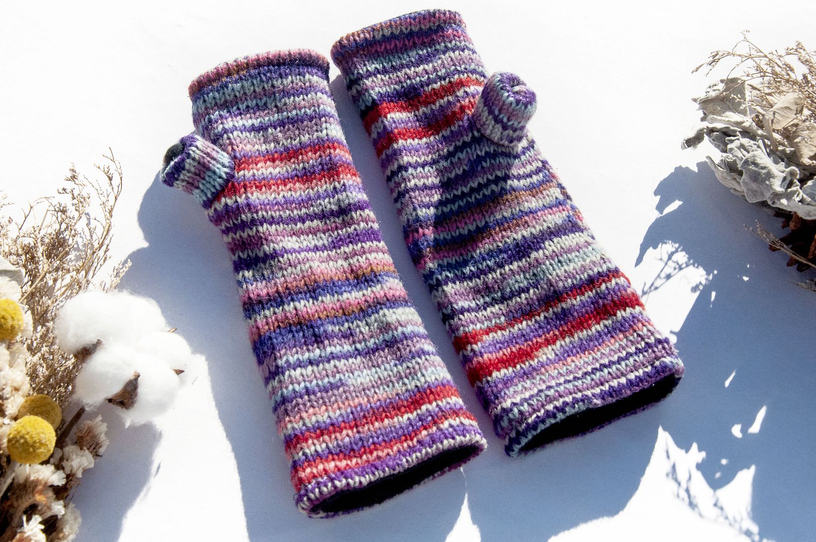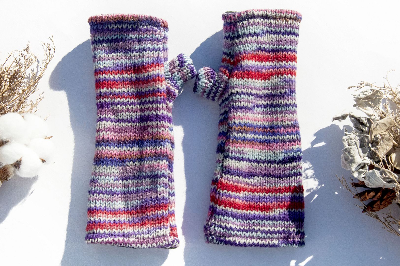 手織純羊毛針織手套/露趾手套/內刷毛手套/保暖手套-北歐草莓漸層