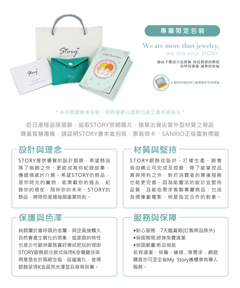 – 包裝 : 雙星仙子精裝書本盒+絨布袋+紙袋+雷射防偽貼紙+商品保固卡