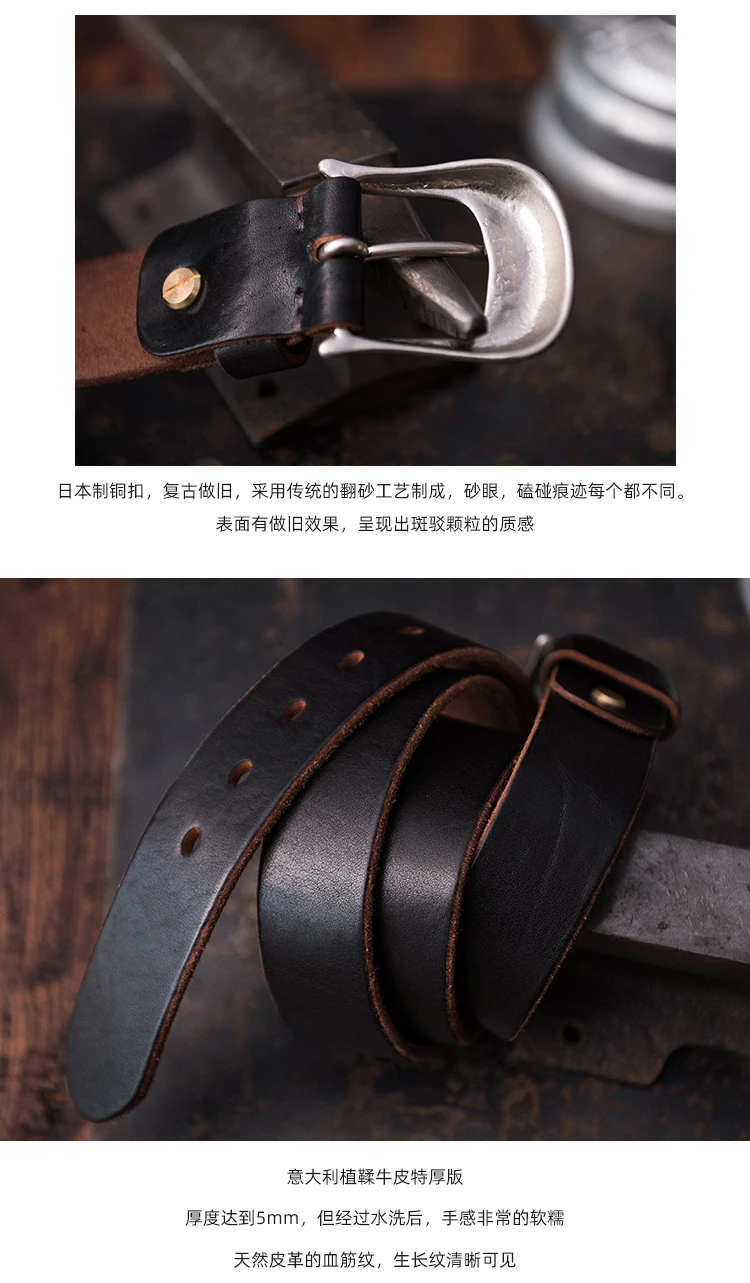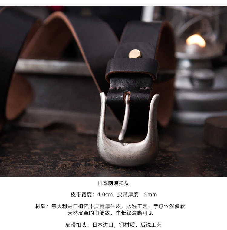 日本製造銅扣 義大利厚植鞣牛皮 復古男士皮帶阿美咔嘰4.0寬5.0厚