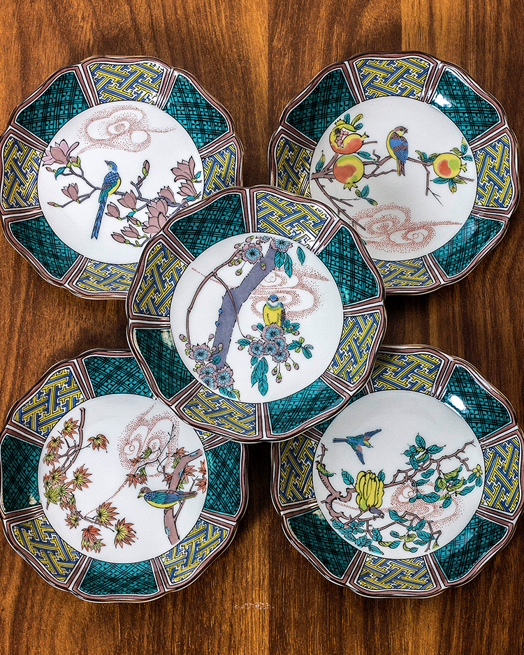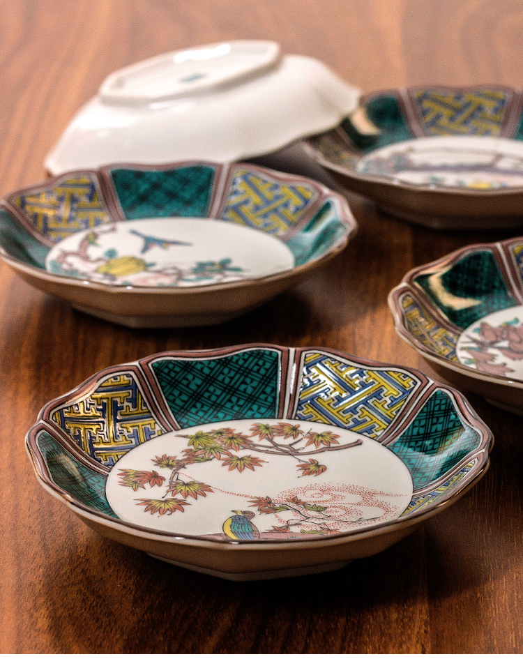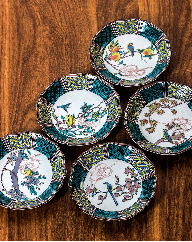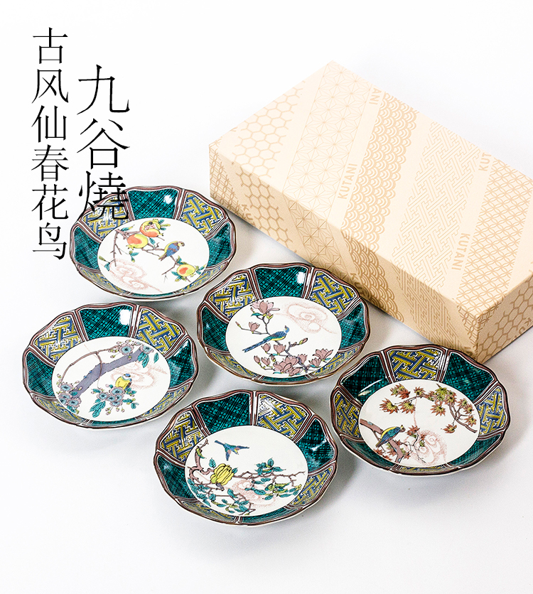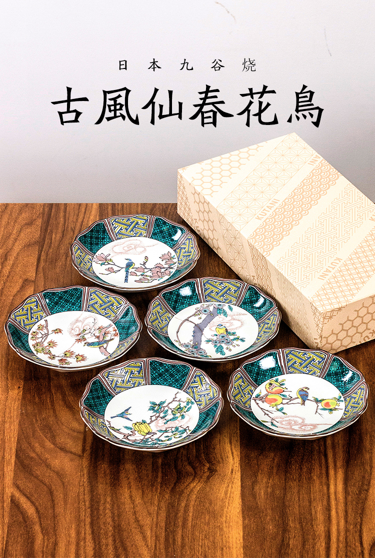 日本進口九谷燒古風仙春花鳥陶瓷小花邊盤甜品盤水果小吃碟小菜盤