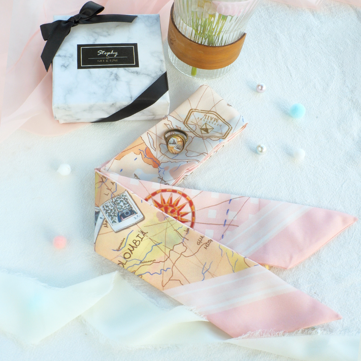 繁花盛開Twilly 絲巾配絲巾扣禮盒:https://hk.pinkoi.com/product/UqFuDN3v