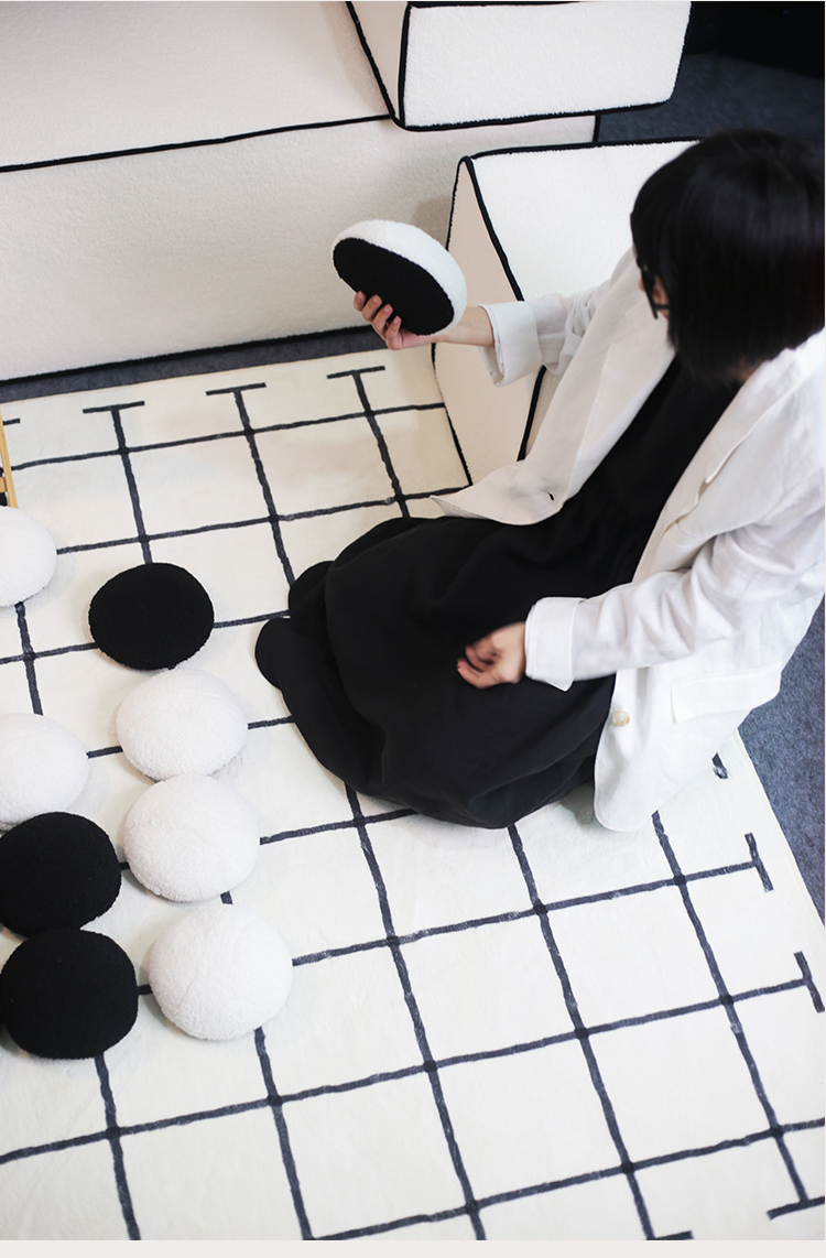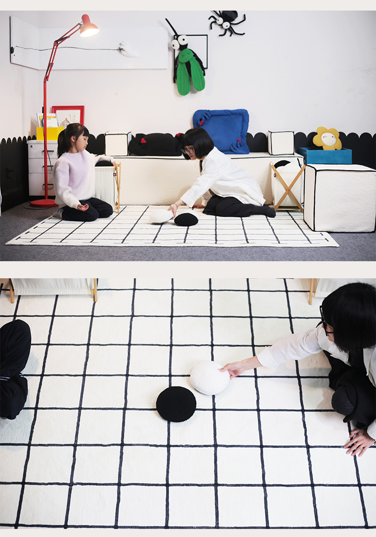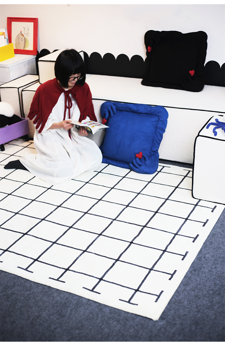 織布云麻麻原創設計黑白格子地毯客廳臥室家用沙發茶幾毯親子娛樂