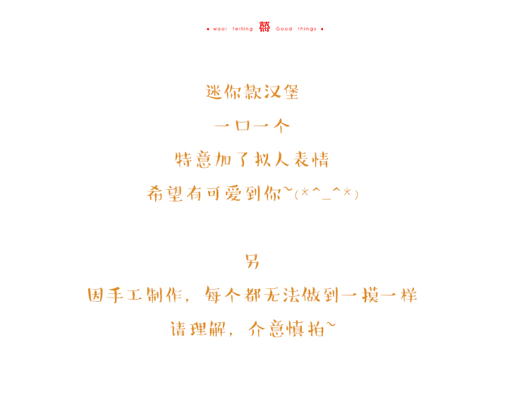 純手作製品費時費力,過程繁瑣。非質量問題不提供退換服務,謝謝理解