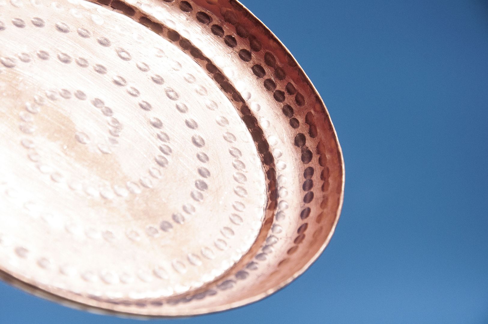 ▲銅容器是印度傳統工藝裡不可或缺的工藝之一,以取自自然的環保概念,應用在日常生活,藉由溫暖手工溫度賦予新的意義,同時銅亦是導熱性良好的材質