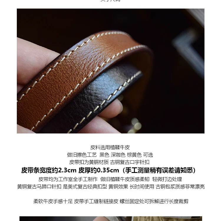 我們選用優質復古頭層牛皮製作,牛皮本身會存在一些天然屬性,如生長紋、血筋、摩擦出的顏色變化、皮斑、紋路不均勻、蚊蟲叮咬,均不屬於質量問題。手工製作的過程中,也會常常留下指甲印、刮痕、壓印、打磨痕跡等等問題,也不屬於質量問題。